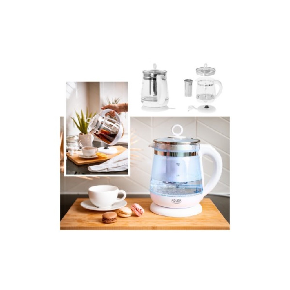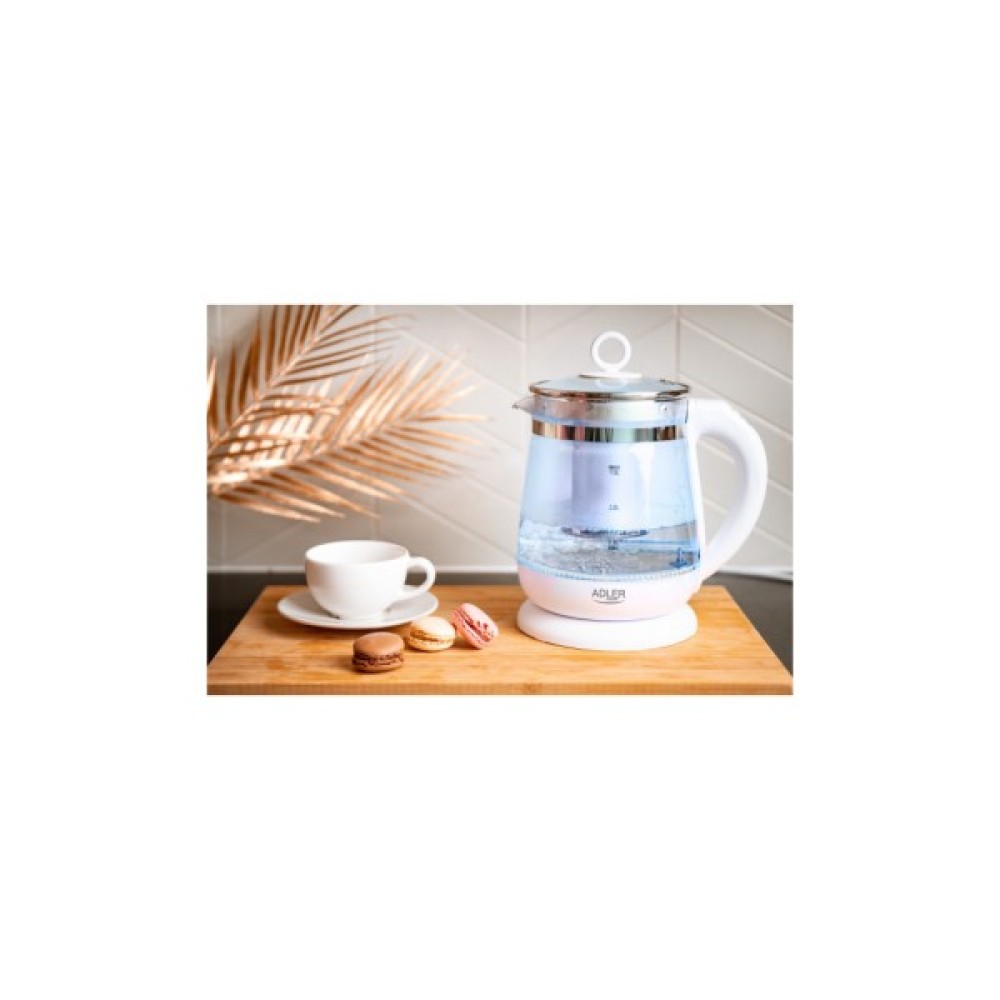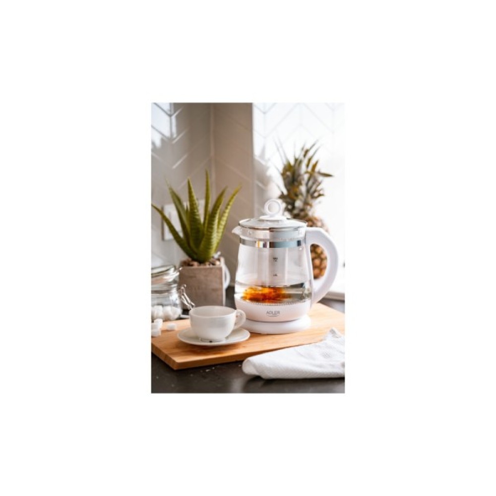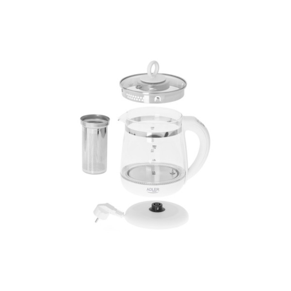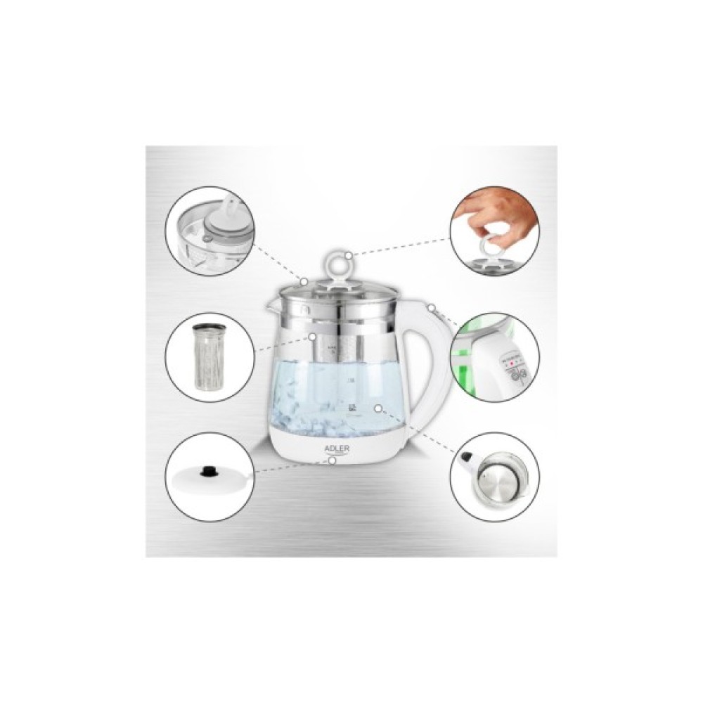Однією з ключових переваг Adler AD 1299 є знімний заварювальний кошик, який робить процес заварювання чаю максимально зручним та ефективним. Завдяки зовнішньому індикатору рівня води, легко стежити за кількістю води, а поворотна основа на 360° забезпечує простоту у використанні для людей з будь-якою ведучою рукою.