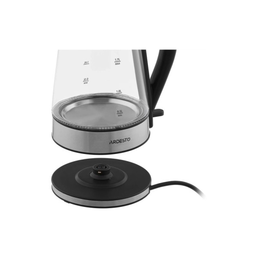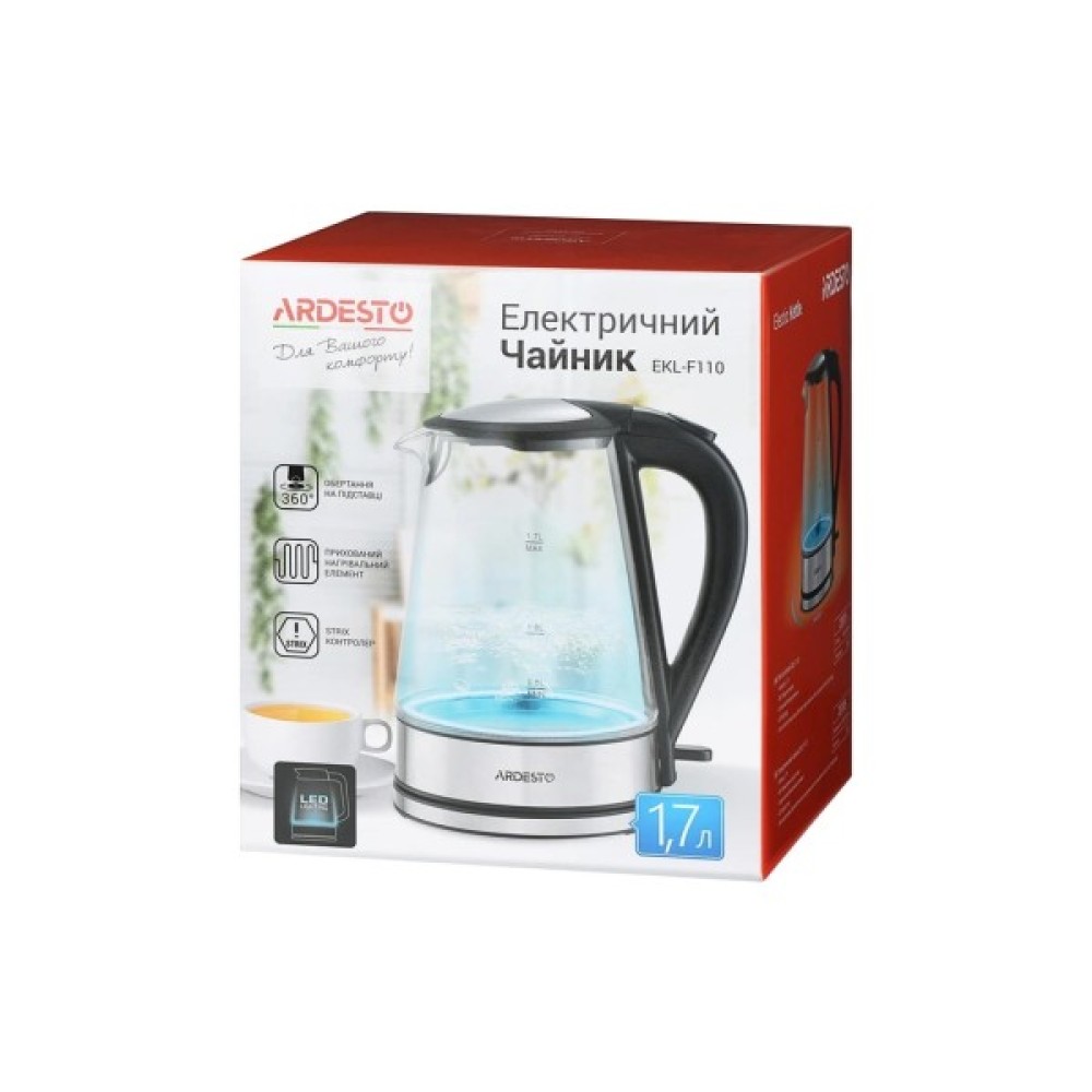 Однією з ключових особливостей Ardesto EKL-F115 є система автоматичного відключення при закипанні води, що забезпечує додатковий рівень безпеки та зручності. Для комфортного використання передбачена можливість обертання на 360° на базі живлення, що дозволяє легко розмістити пристрій на будь-якій кухні, незалежно від розташування розетки.