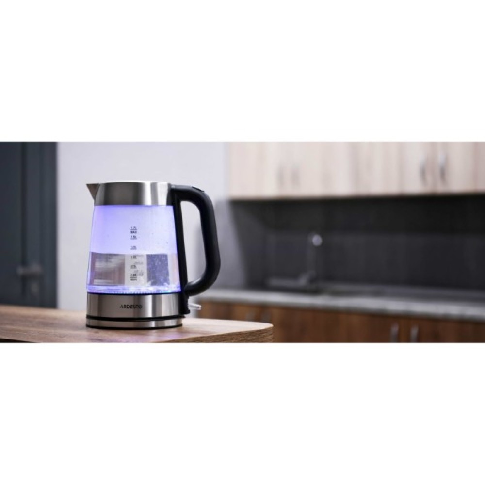 Корпус чайника виготовлений з високоякісного скла, що не тільки зберігає природний смак води, але і додає вишуканості його дизайну. Окрім того, спеціальне LED-підсвічування синього кольору надає візуальної привабливості під час роботи пристрою, що додає нотку сучасного стилю вашій кухні.