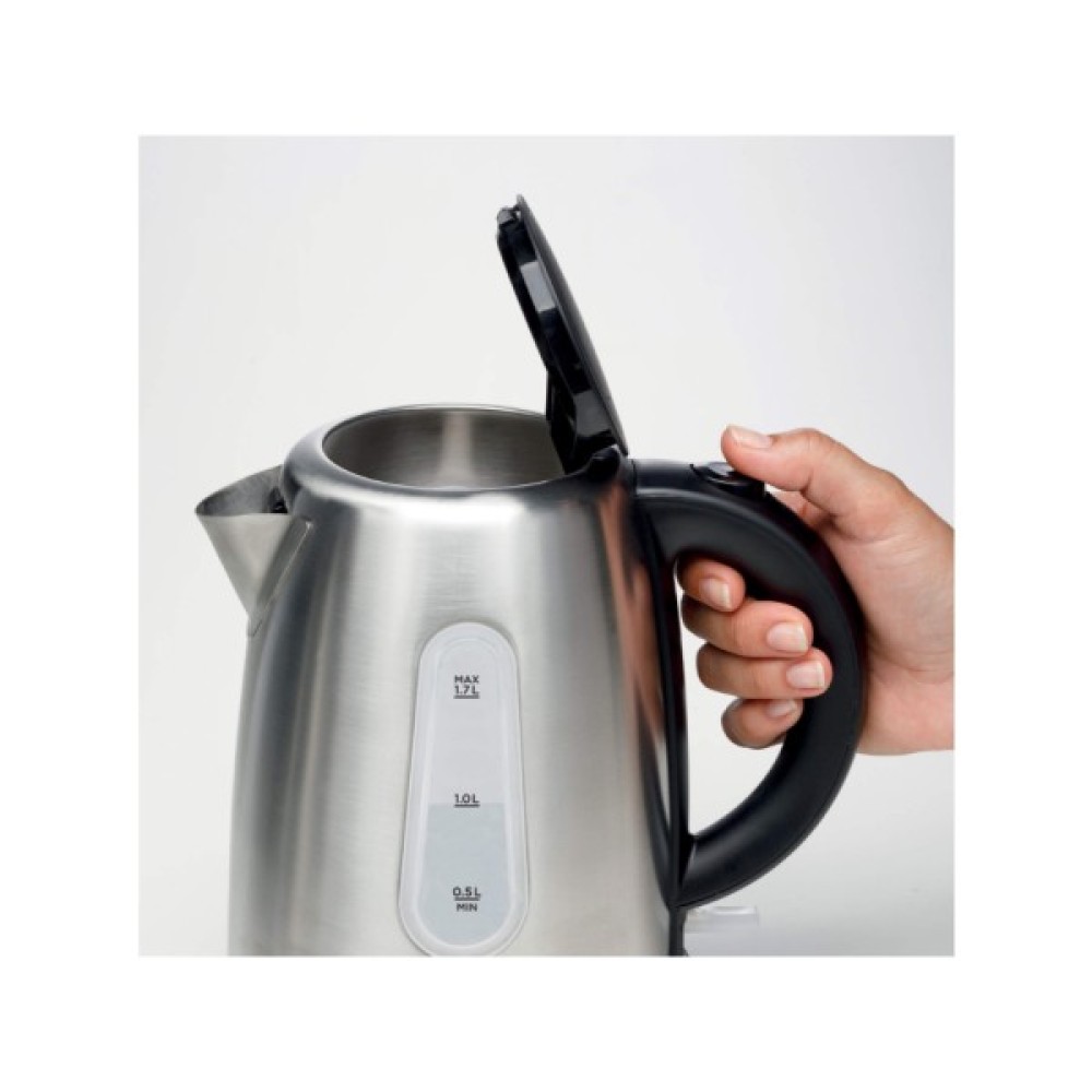 Корпус електрочайника виготовлено з нержавіючої сталі, яка не тільки надає йому стильного вигляду, але й забезпечує довговічність та стійкість до високих температур. Прихований нагрівальний елемент у вигляді диска гарантує рівномірне і швидке нагрівання води, що значно підвищує ефективність та спрощує догляд за приладом.