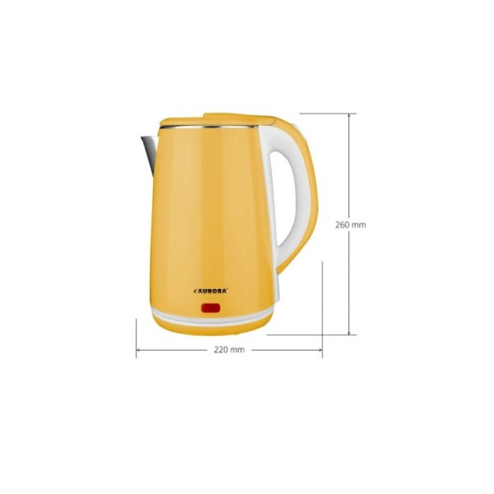 З об'ємом у 2 літри і споживаною потужністю 1750 Вт, Aurora AU3407 забезпечує швидке закипання води, що економить ваш час і зусилля. Виконаний із високоякісної нержавіючої сталі, корпус не тільки вражає своєю міцністю, але й зберігає естетичний вигляд на довгі роки. Внутрішній індикатор рівня води дозволяє зручно контролювати обсяг рідини. Особливістю цього електрочайника є прихований (дисковий) нагрівальний елемент, що значно полегшує догляд за ним і не піддається корозії.