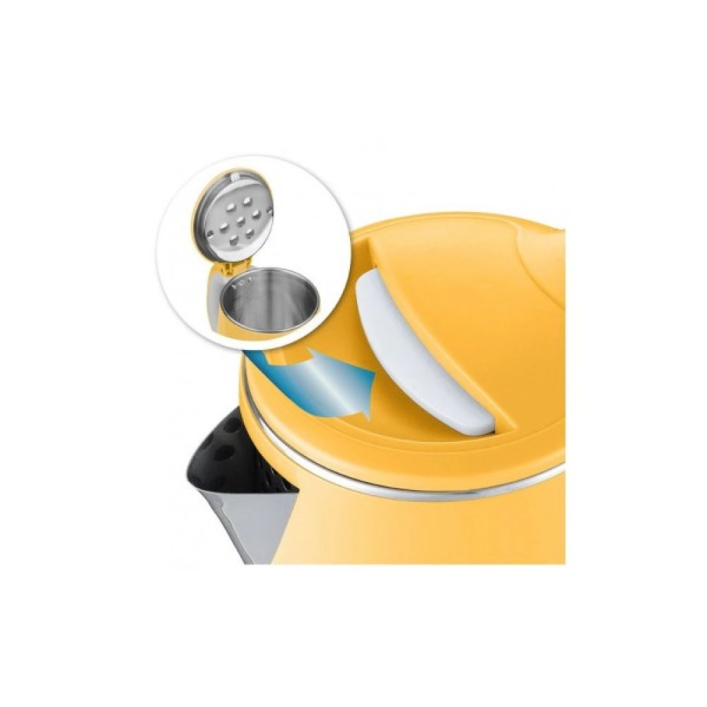 Бездротова конструкція чайника із обертанням на 360° на підставці робить використання максимально зручним – ви можете взяти його з будь-якого ракурсу. Захисні функції, такі як автовідключення при закипанні води, захист від включення без води та автовідключення при знятті з підставки, гарантують додаткову безпеку під час експлуатації. А завдяки функції захисту від перегріву, ви можете бути впевнені в довговічності чайника.