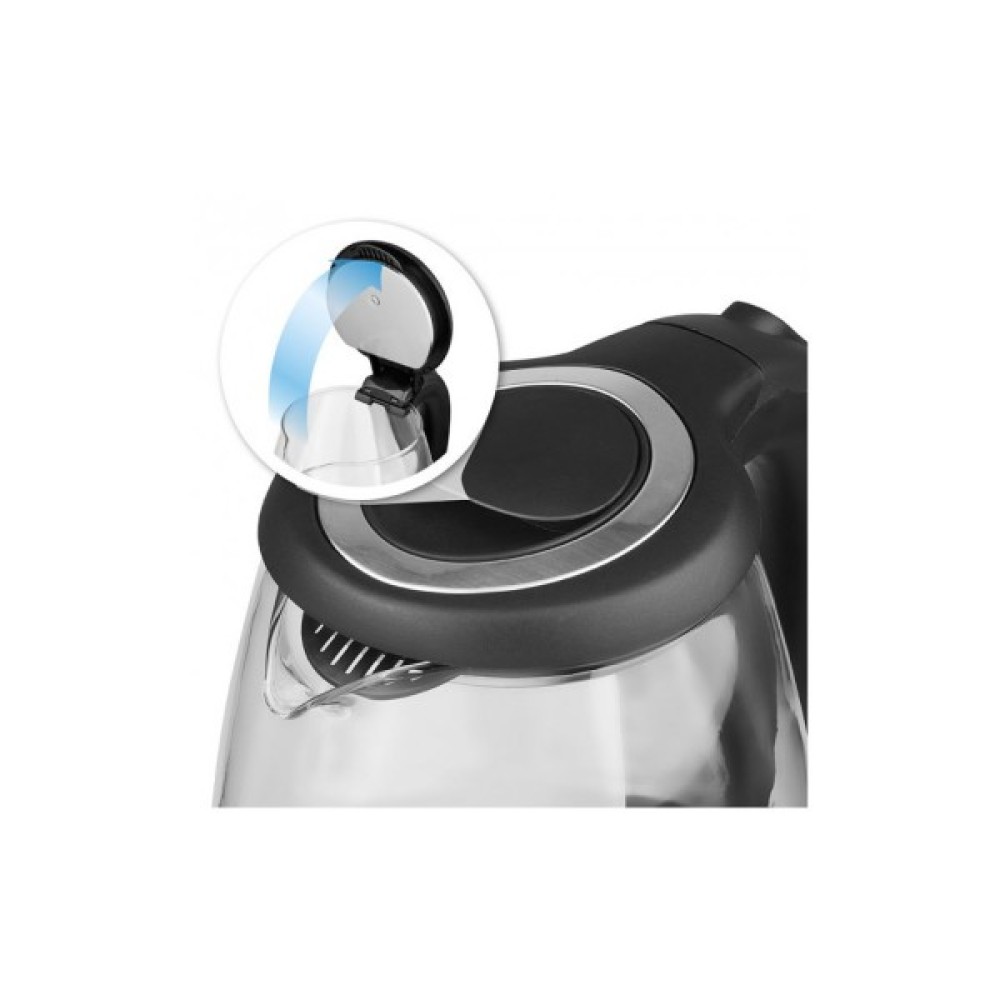 Однією з головних переваг чайника є екологічний та зносостійкий корпус з високоякісного скла, який надає приладу вишуканий вигляд. Блакитне підсвічування корпусу додає особливого шарму під час роботи, створюючи приємну атмосферу на кухні. Скляний корпус не тільки забезпечує естетичний вигляд, але й полегшує візуальний контроль за процесом кипіння та рівнем води завдяки зовнішньому індикатору рівня.