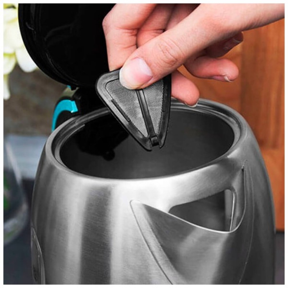 Cecotec CCTC-01514 оснащений прихованим дисковим нагрівальним елементом, що забезпечує швидке кип’ятіння і легке очищення. Завдяки системі обертання на 360°, чайник можна зручно встановлювати на підставку в будь-якому положенні. Особливість у наявності зйомного фільтра від накипу, робить догляд за пристроєм максимально простим.