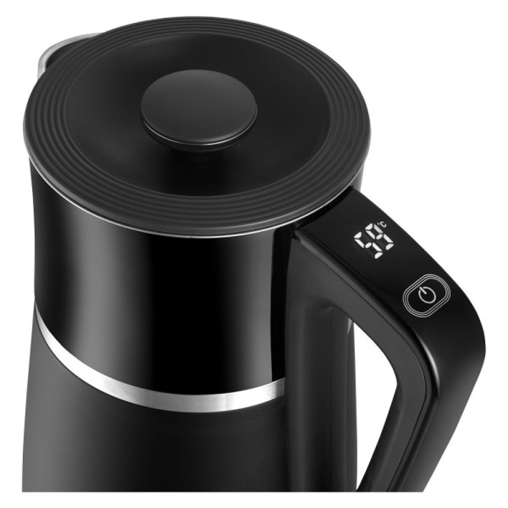 Серед інших переваг слід виділити дисплей та терморегулятор, які дозволяють вибрати п’ять рівнів температури: 40°C, 60°C, 80°C, 90°C та 100°C. Це функція стане в нагоді для приготування не тільки чаю чи кави, але й дитячих страв, де точне регулювання температури є критично важливим.