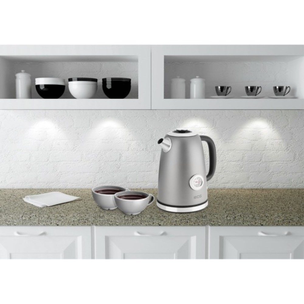 Електрочайник ECG RK 1700 Magnifica Antracito ідеально поєднує в собі стильний дизайн та високу функціональність, що робить його незамінним пристроєм на вашій кухні. З перших хвилин використання ви оціните якісне виконання корпусу з нержавіючої сталі, яке надає чайнику не лише естетичної привабливості, але й гарантує довговічність. Колір антрацит підкреслює вишуканість і елегантність приладу, гармонійно вписуючись у будь-який інтер'єр.
