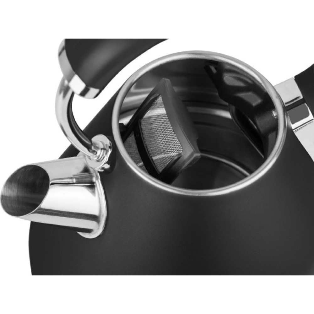 Електрочайник ECG RK 1708 Tradizione поєднує в собі елегантний дизайн та практичність, що робить його чудовим вибором для будь-якої кухні. Об'єм пристрою становить 1,7 літра, це дозволяє кип'ятити достатню кількість води за один раз. Чайник виготовлений з фарбованого металу з матовою обробкою, що надає йому стильного вигляду. Оснащений практичним індикатором рівня води та знімним фільтром від накипу, він спрощує процес догляду та підтримання чистоти.
