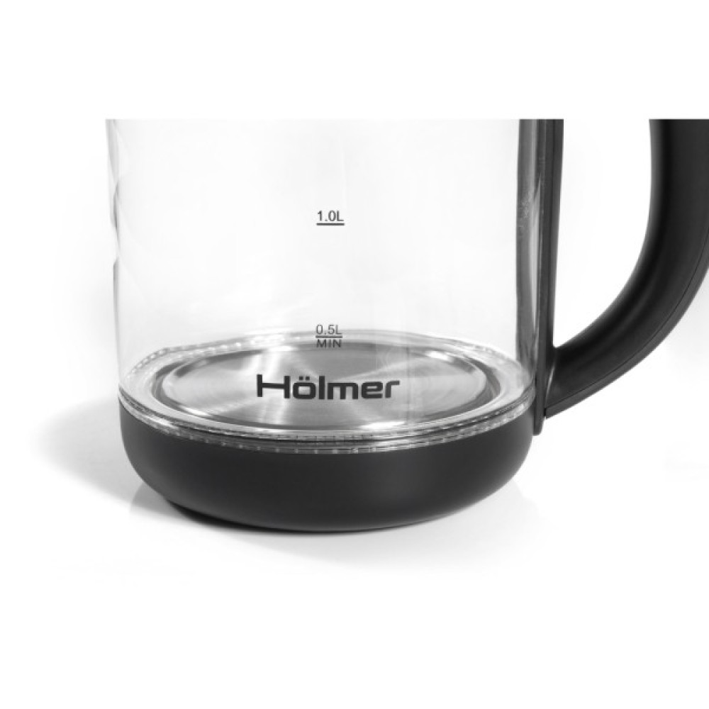 Скляний корпус Hölmer HKS-2025 неодмінно додасть вашій кухні елегантності. Прозорість матеріалу не тільки виглядає вишукано, але й дозволяє спостерігати за процесом нагрівання води. Чорні акценти корпусу підкреслюють його стильний та сучасний вигляд, що прекрасно доповнить інтер'єр будь-якої кухні. Завдяки подвійним стінкам цього електрочайника, напій довше зберігає тепло, а зовнішня частина залишається безпечною на дотик.