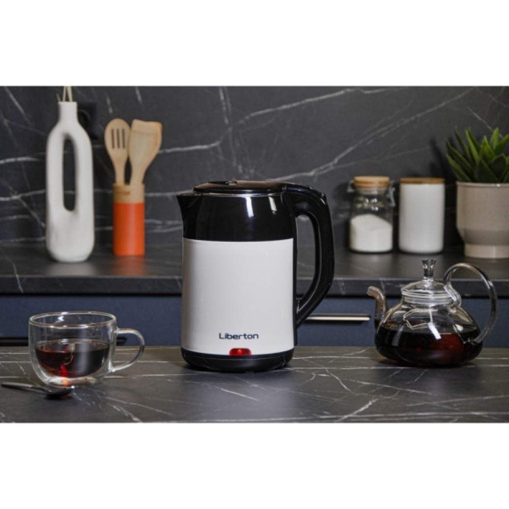 Корпус чайника виконаний з міцного матеріалу з подвійною стінкою з нержавіючої сталі та пластику, що забезпечує довговічність та збереження тепла. Біло-чорний дизайн надає пристрою сучасного та стильного вигляду, який підійде до будь-якого інтер'єру. Електрочайник LIBERTON LEK-6825 - це надійний та зручний помічник на вашій кухні, який зробить приготування гарячих напоїв швидким та простим.