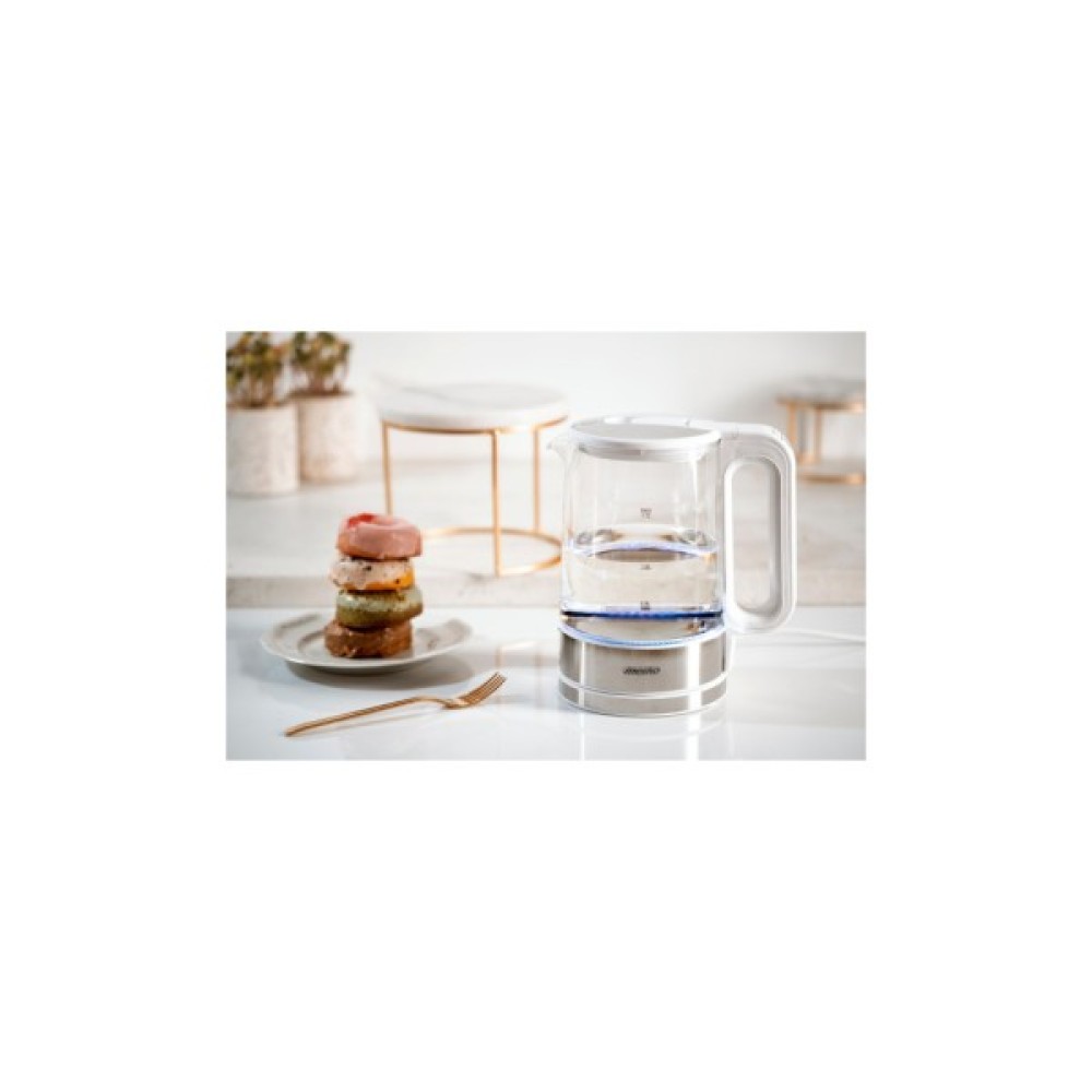 Елегантний білий колір Mesko MS 1301 підкреслює його сучасний стиль, роблячи прилад універсальним доповненням до будь-якого інтер'єру. Завдяки поєднанню естетики та функціональності цей електрочайник стане незамінним атрибутом вашого щоденного комфорту. Обираючи Mesko MS 1301, ви обираєте якість, надійність та бездоганний стиль.