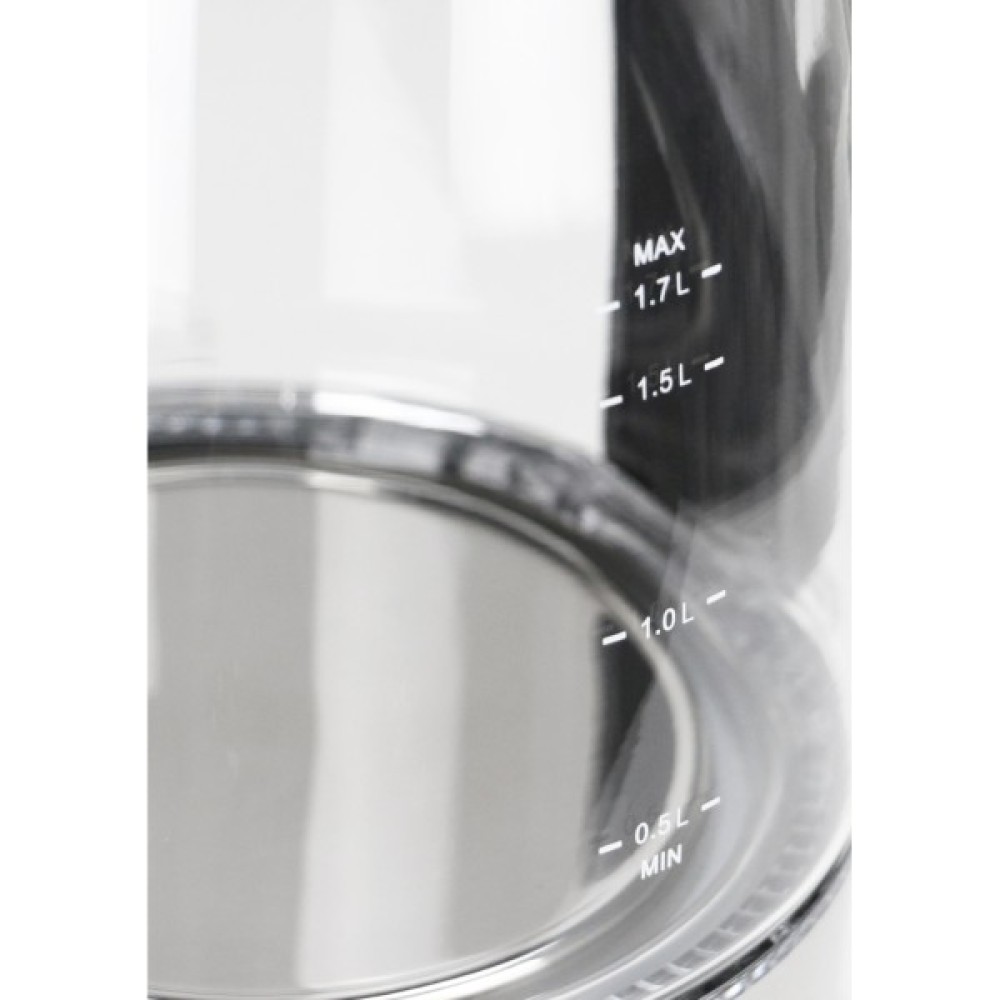 Основна конструкція виконана з міцного скла, що не лише надає приладу сучасного вигляду, але й забезпечує можливість візуально контролювати кипіння води. Підсвічування корпусу додає вишуканого вигляду і перетворює кипіння води на справжнє світлове шоу. Важливими перевагами є захист від включення без води та автоматичне вимкнення при досягненні точки кипіння, що робить використання повністю безпечним і зручним.