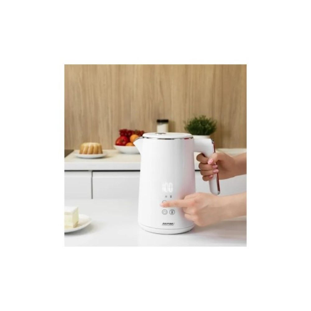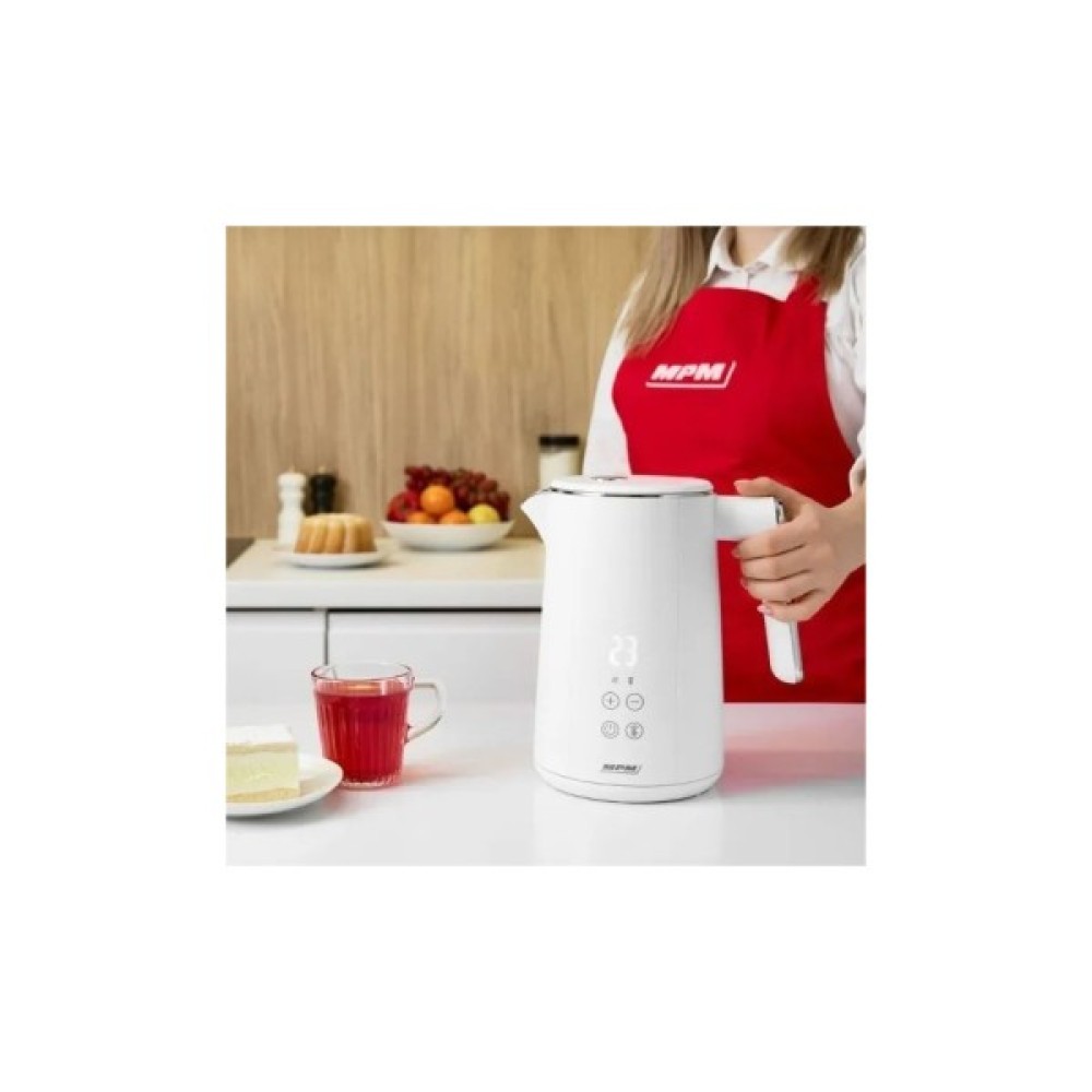 Естетичний білий колір корпусу гармонійно вписується у будь-який інтер'єр, а перемикач з підсвічуванням додає стилю та зручності під час експлуатації. Електрочайник MPM MCZ-120 — вибір тих, хто цінує якість, безпеку та функціональність.