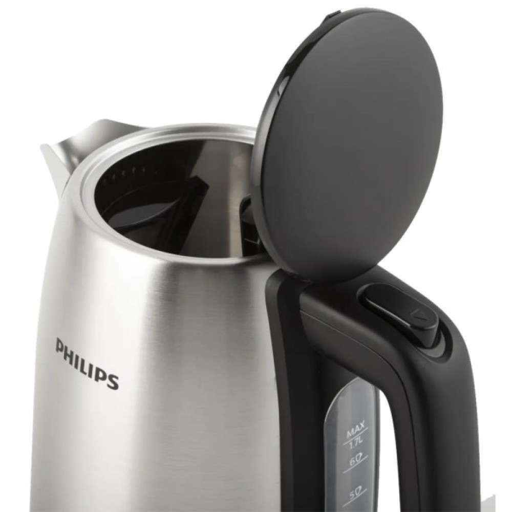 Безпека на першому місці Завдяки продуманій системі безпеки, Philips HD9350/90 автоматично відключається при закипанні води, а також забезпечено захист від перегріву та автовідключення при знятті з підставки. Ці функції не лише гарантують безпеку приладу, але й зберігають енергію, що робить його більш екологічним вибором.