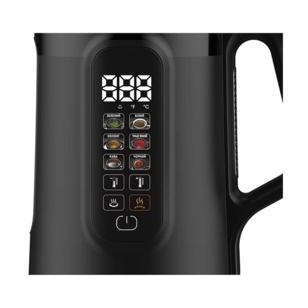 Досвід використання електрочайника покращує можливість обертання на 360°, що забезпечує легкість його використання з будь-якого боку. Довжина кабелю 0.75 м надає свободу розміщення пристрою у просторі вашої кухні. Додаткові програми включають функцію підтримання заданої температури та нагрівання без кип'ятіння, що акцентує увагу на вашому комфорті.