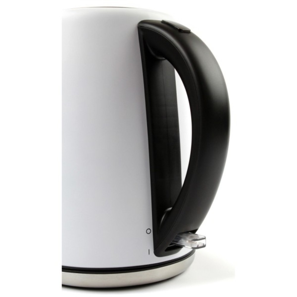 Корпус із нержавіючої сталі гарантує надійність та довговічність, а також додає естетичну привабливість, поєднуючи функціональність з вишуканим білим кольором. Завдяки прихованому дисковому нагрівальному елементу, тепло розподіляється рівномірно, що сприяє зменшенню часу закипання води та подовжує термін служби приладу.