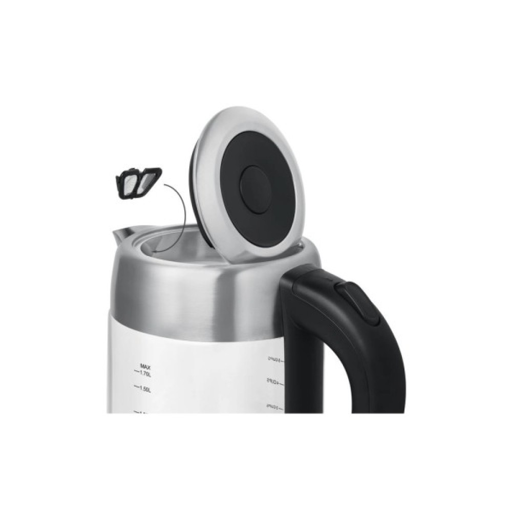 Потужність цього агрегата — 2200 Вт, що гарантує швидке закипання води, економлячи ваш час у динамічному розпорядку дня. Прихований диск нагрівального елемента з високоякісної нержавіючої сталі береже від накипу і спрощує очищення.