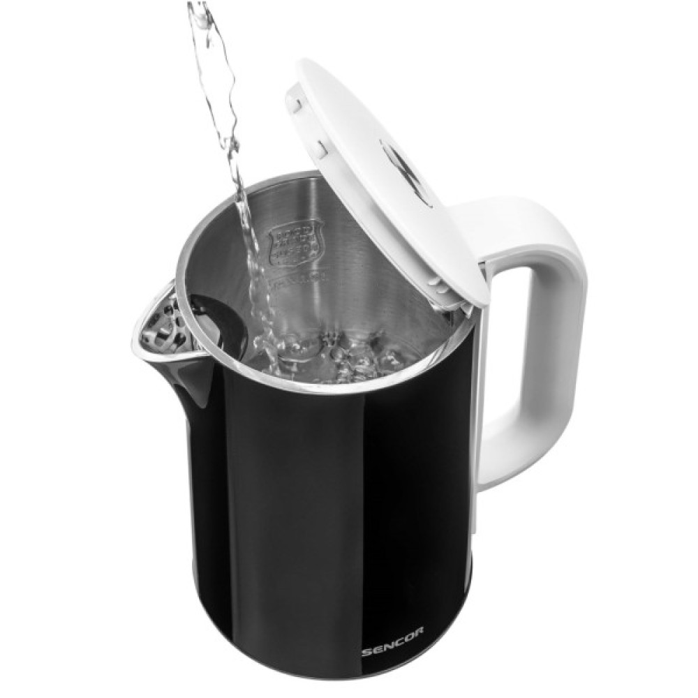 Безпека - пріоритет Sencor SWK 1592BK: він оснащений потрійною системою захисту. Це захист від перегріву, ввімкнення без води та автоматичне вимкнення під час зняття з підставки і закипання. Ці рішення роблять його безпечним та надійним вибором для кожної сім'ї.