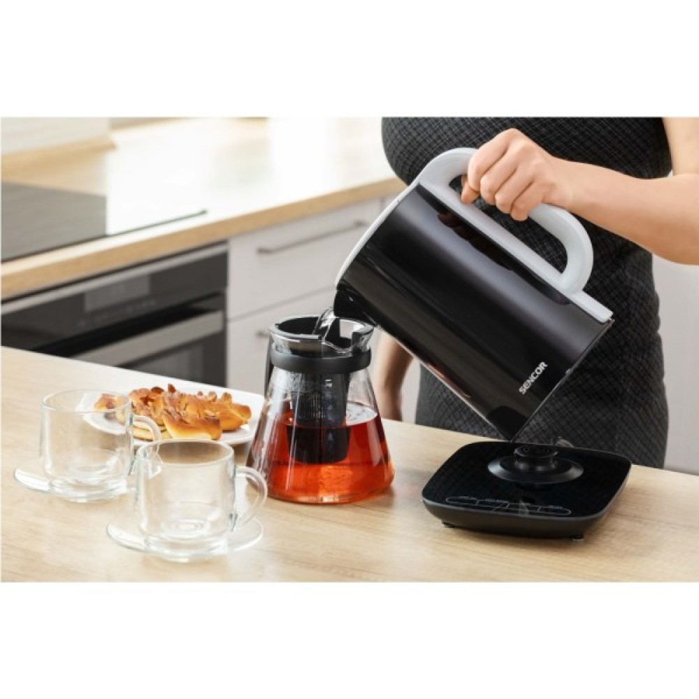 Електрочайник Sencor SWK 1592BK – це витвір сучасних технологій, призначений для тих, хто шукає комфорт, безпеку та високу якість в одній флягоденній формі. Основна перевага цього чайника – можливість вибору та підтримки оптимальної температури в діапазоні від 40°C до 100°C. Це робить його ідеальним партнером для пошанувальників різноманітних напоїв, будь то зелений чай чи ароматний еспресо.