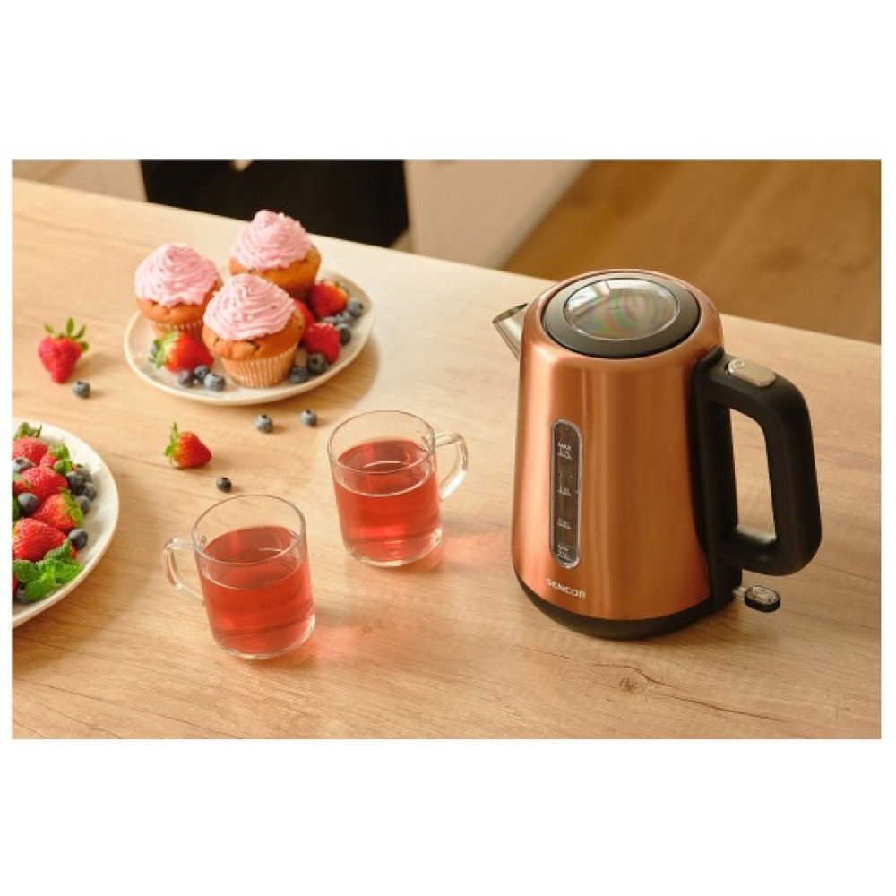 Електрочайник Sencor SWK 1752CO - це ідеальне поєднання передових технологій та стильного дизайну, спеціально створене для комфортного користування. Завдяки великому об'єму в 1.7 літра цей чайник стане незамінним помічником у вашій кухні, дозволяючи швидко закип'ятити воду для улюблених напоїв для всієї родини.