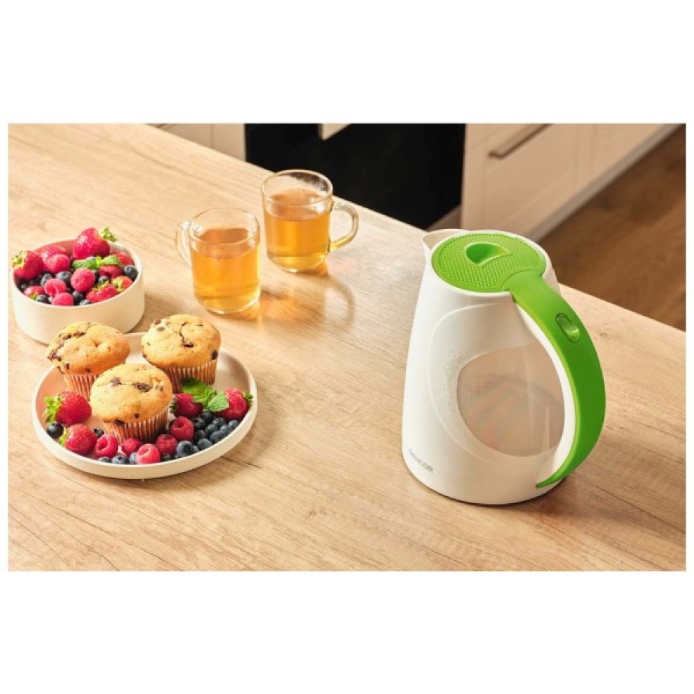 Електрочайник Sencor SWK1511GR — це вірний вибір для тих, хто шукає надійність, ефективність та стиль в одному пристрої. Компактний розмір і зелений колір роблять його не лише функціональною річчю, а й естетично привабливим елементом вашої кухні.