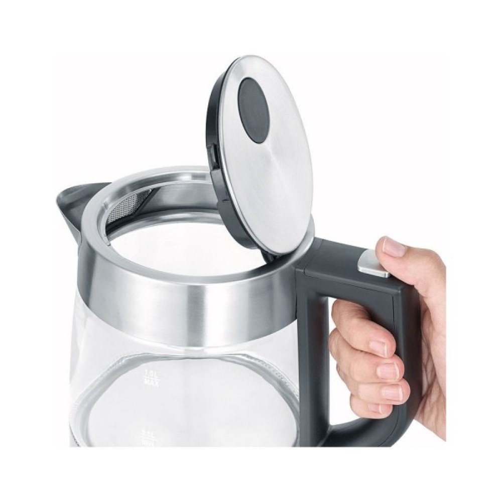 Електрочайник Severin WK 3468 — це втілення сучасного стилю та інновацій, розроблених для тих, хто цінує бездоганну якість у кожній деталі. З компактним об'ємом у 1 літр, цей чайник ідеально підходить як для особистого використання, так і для сімейних посиденьок. Виготовлений з високоякісного скла в поєднанні з нержавіючою сталлю, він не лише привабливий, але й безпечний, що робить його естетичним акцентом вашої кухні.