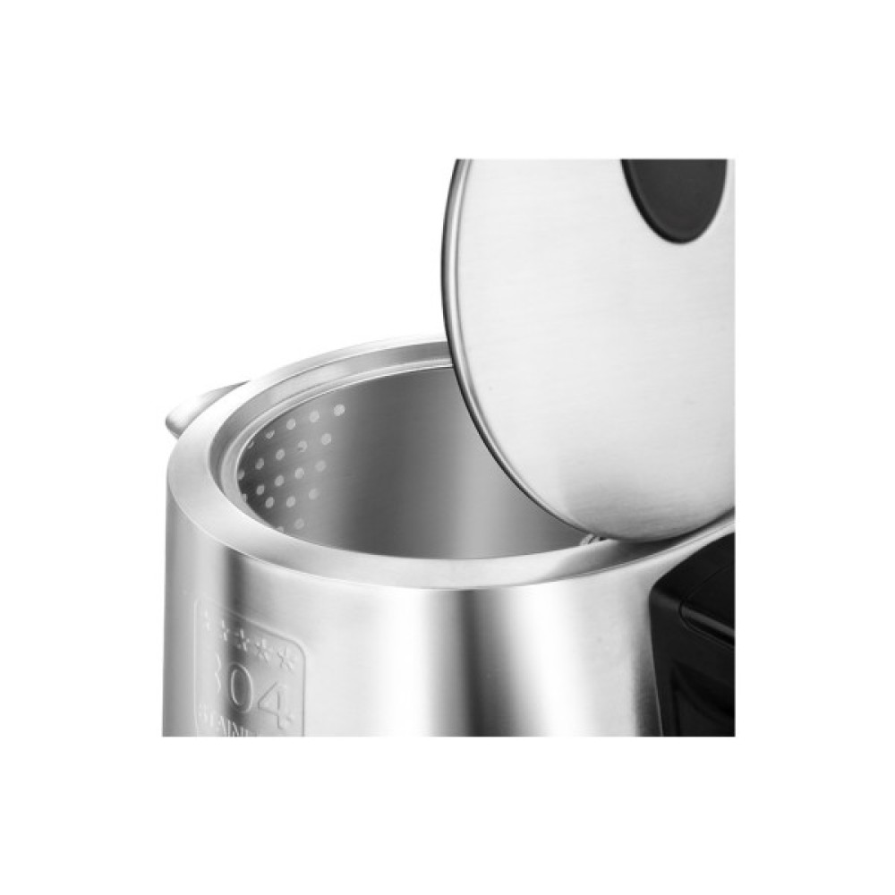 Завдяки потужності 2200 Вт, вам не доведеться чекати довго: вода закипітить у найкоротші терміни. Прихований нагрівальний елемент типу диск забезпечує рівномірний нагрів, запобігаючи утворенню накипу на стінках чайника. Об'єм у 1,7 літра дозволяє легко напоїти чаєм велику компанію або насолодитися кавою кілька разів упродовж дня без необхідності постійного наповнення пристрою водою.