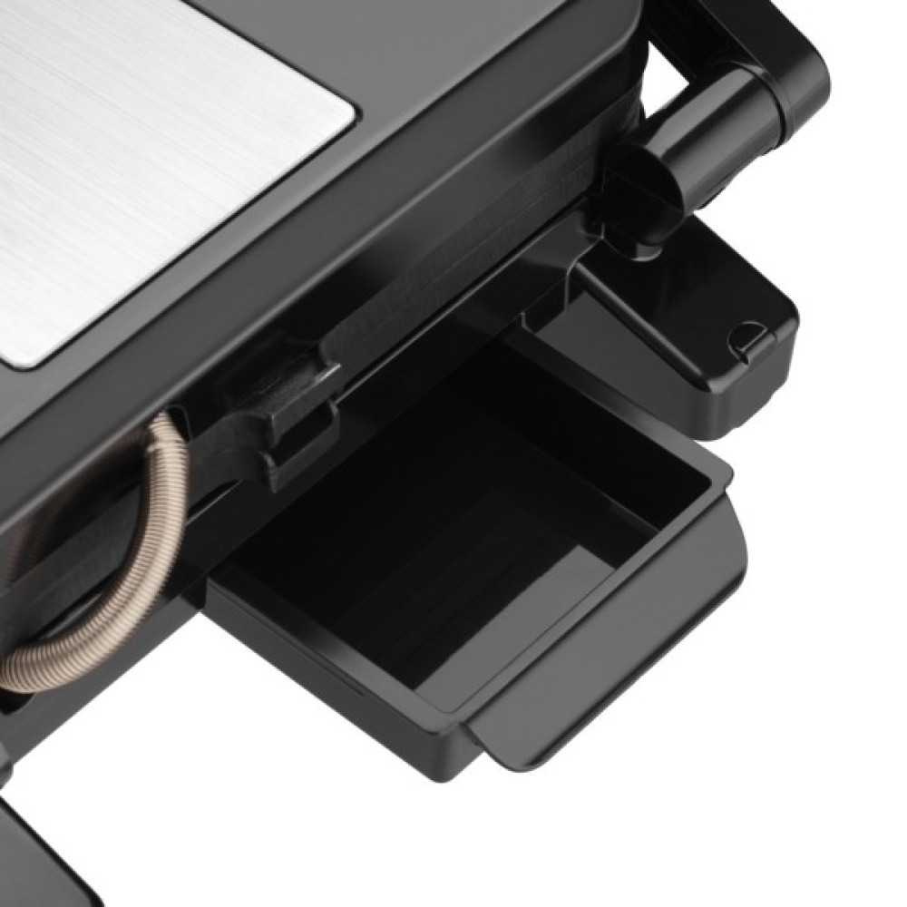 Притискний гриль ARDESTO GH-1800MB потужністю 1 800 Вт із інтуїтивно зрозумілим механічним керуванням. Передбачено розкриття на 180° та регулювання температури. Пристрій оснащено рифленими протипригарними керамічними пластинами та знімним лотком для збирання олії. На додачу: ергономічне руків’я та нековзна основа.