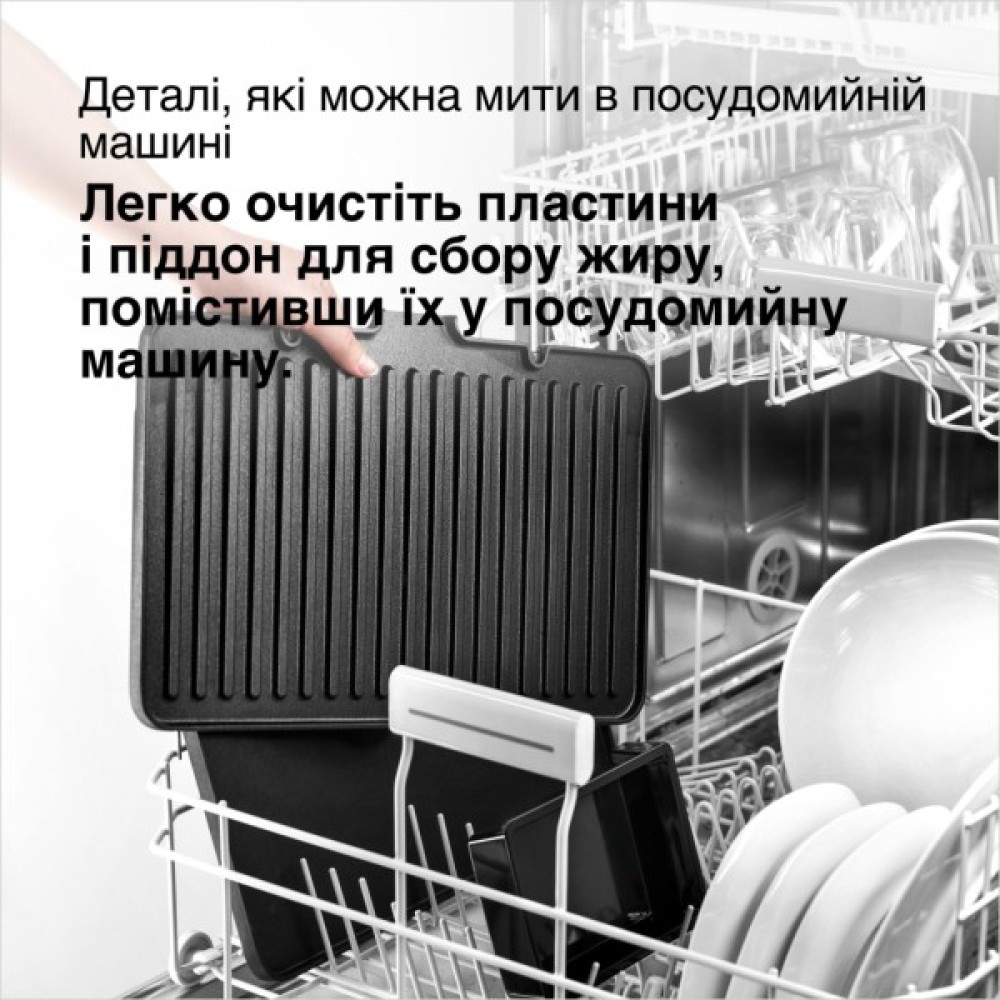 Особливості одночасне нагрівання верхньої і нижньої частин; ручка, що не нагрівається; нековзні ніжки; регульований термостат; ребриста поверхня; індикатор роботи; знімні пластини; мобільний додаток