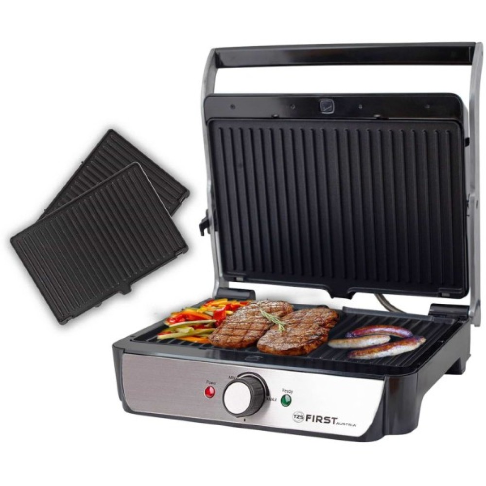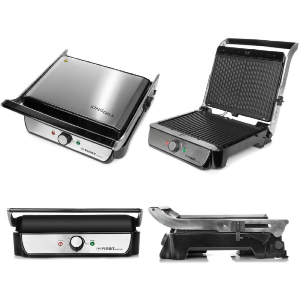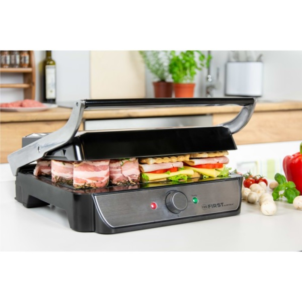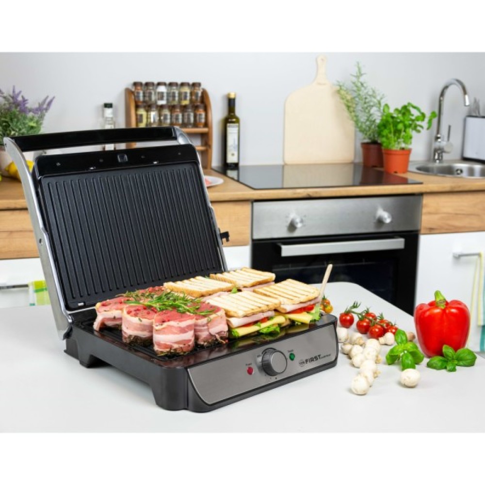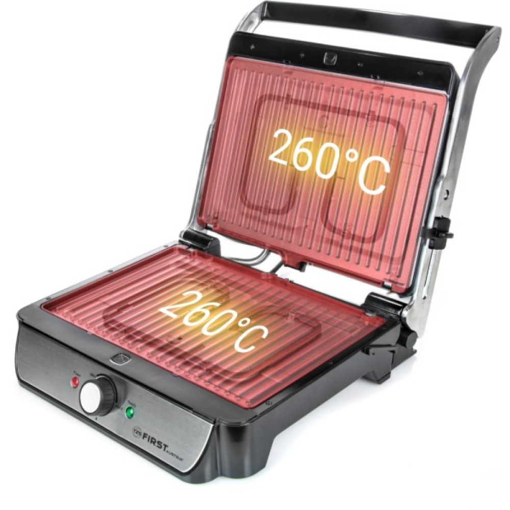 З потужними контактними грилями від First FA-5344-2 ви можете без жодних турбот готувати у приміщенні, на балконі чи в саду. Будь то м’ясні, рибні чи овочеві шашлики, грилі миттєво готують смачні страви на барбекю, сендвічі та багато іншого. Міцні пластини гриля можна відкривати на 180° і таким чином пропонують достатньо місця для всього, що вам подобається.