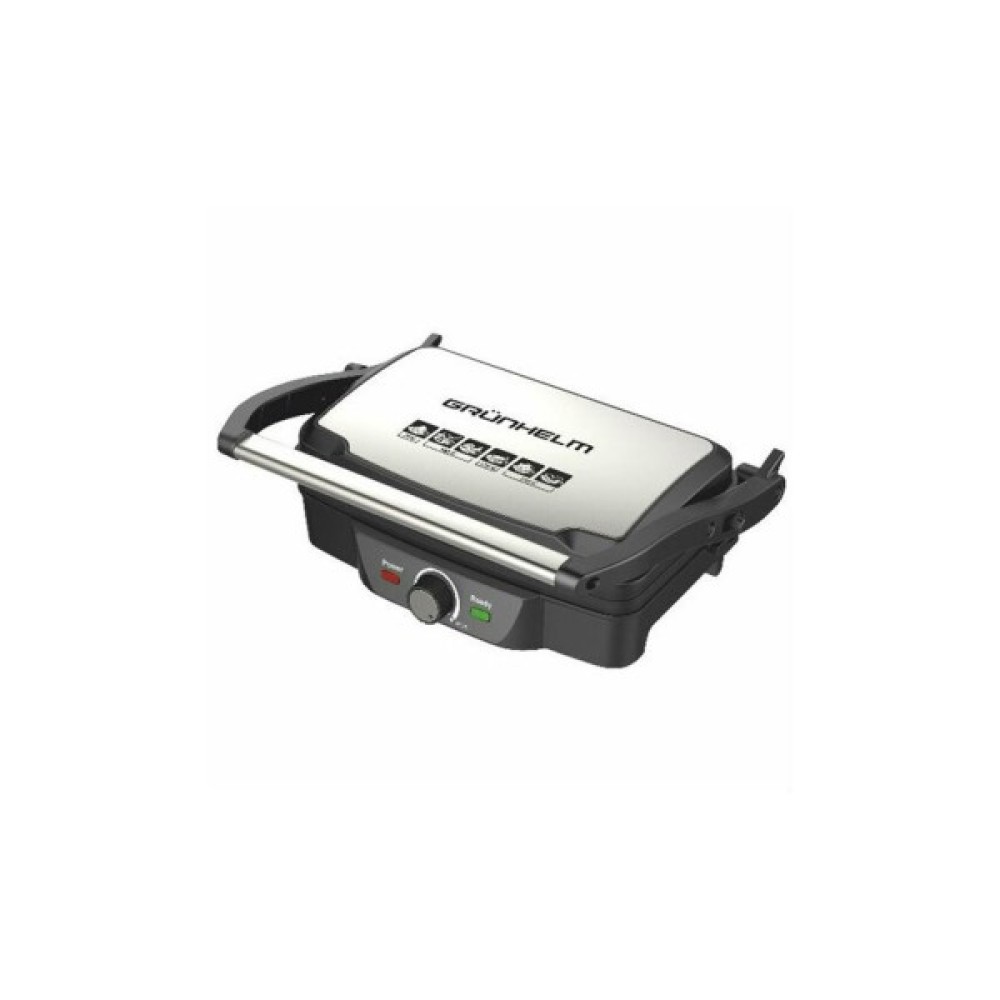 Електрогриль Grunhelm G1610 смажить м'ясо, картопля та рибні стейки, підігріває продукти, готує гарячі бутерброди і овочі. За рахунок антипригарного покриття панелей, смажити в грилі можна практично без масла ‒ страви не пригорять і будуть менш калорійними, корисними і смачними. Розмір панелей электрогриля G2200 - 280*170 мм, що дозволяє відразу зробити на ньому кілька порцій овочів гриль, домашніх ковбасок або гарячих закусок. Панелі приладу при роботі нагріваються до 200 градусів. Продукти швидко набувають хрустку скоринку, яка зберігає соковитість продукту. Під час приготування масло і витоплений жир стікають у знімний піддон.