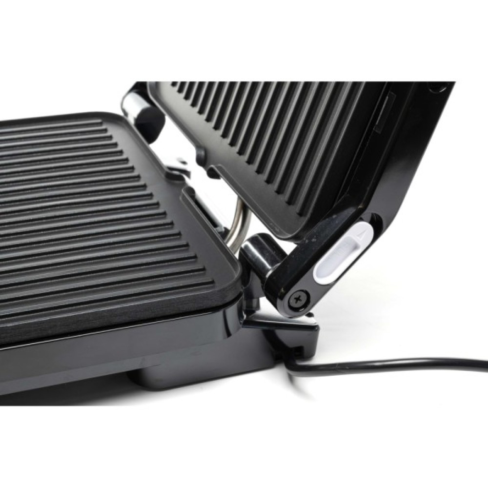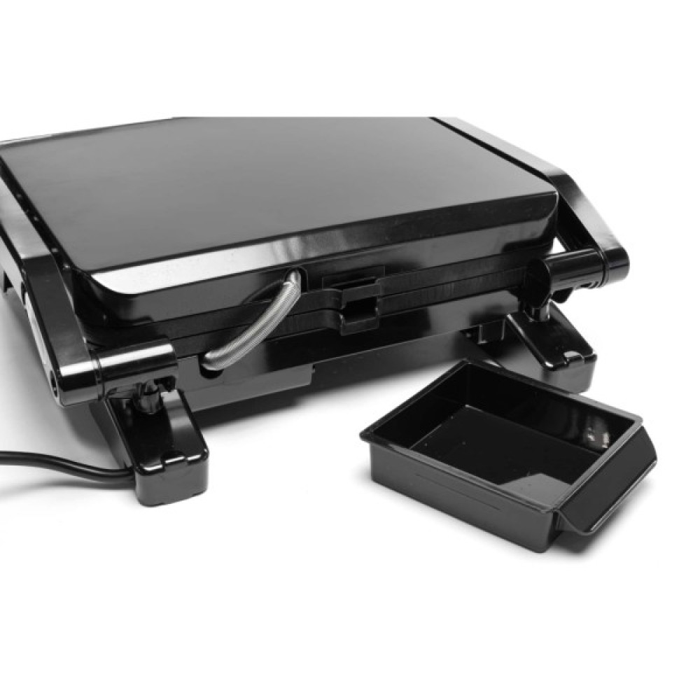Кут відкриття конструкції можна налаштовувати на 105° або 180°, що дозволяє використовувати гриль як у закритому, так і у відкритому положенні. Знімний піддон для збору крапель жиру допомагає підтримувати чистоту на кухні.