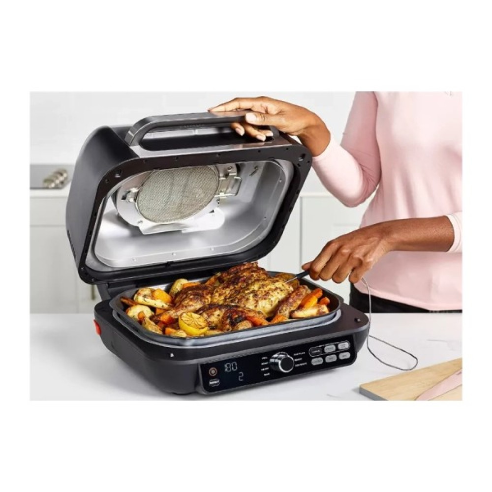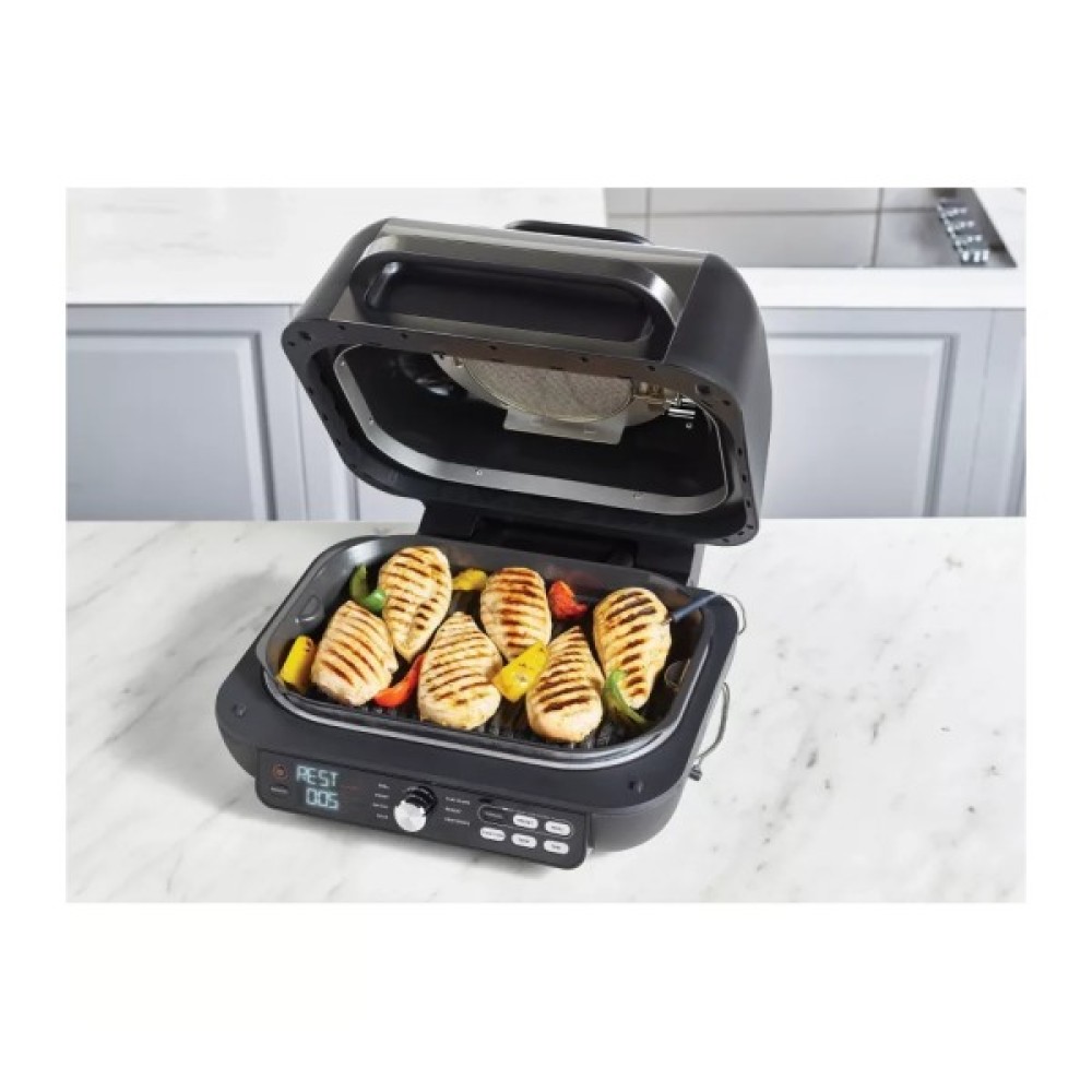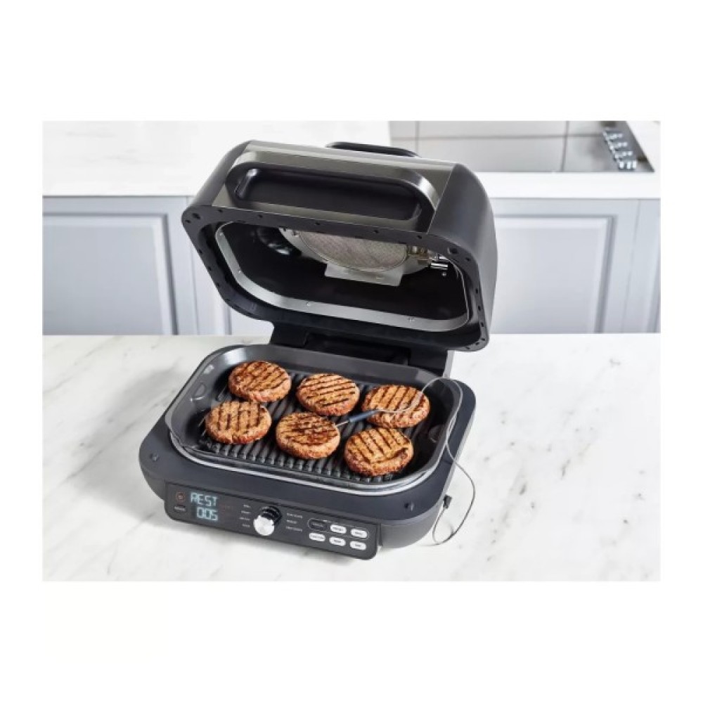Одна з найфункціональніших моделей гриля для вашої кухні дає практично необмежену свободу приготування! На першій пластині можна готувати і яйця, і дрібно нарізану цибулю. Звісно ж, друга подарує вашим стейкам смачні грильові візерунки. А термощуп подбає про ступінь прожарювання.