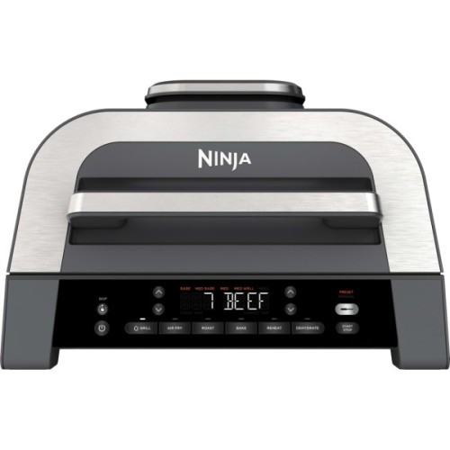 Втомилися від тривалого приготування їжі та надмірної кількості олії? Тепер можна готувати швидко, зручно й отримувати більш здоровий раціон! Гриль Ninja Foodi MAX Air Grill & Air Fryer з Cooking probe DG551EU оснащений 6 функціями приготування — смаження, гриль, дегідратація, запікання, аерофритюр і розігрівання. Навіть новачки зможуть готувати смачні страви ресторанного рівня. Технологія Cyclonic Grilling з гарячим повітрям до 265°C рівномірно обсмажує зі хрусткою скоринкою та насиченим ароматом. А система Smart Cook і розумний термощуп дозволяють досягти ідеального результату з 4 режимами для різних видів м’яса і 9 рівнями просмаження. Знижуйте споживання олії на 75% і отримуйте страви зі зменшеною калорійністю. Приготування заморожених страв потребує лише 25 хвилин з високою потужністю 1760 Вт. Ідеальна система контролю диму дозволяє залишати кухню чистою, а керамічне покриття легко очищується навіть у посудомийній машині. Додайте приготуванню улюблених страв професійного рівня з грилем Ninja Foodi MAX!