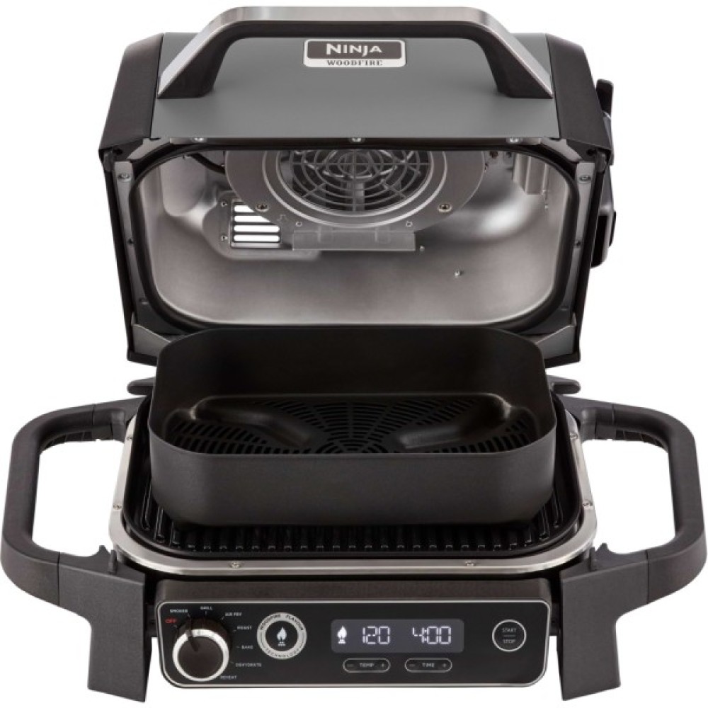Відкрийте для себе новий спосіб приготування їжі на відкритому повітрі з електричним грилем Ninja Woodfire з коптильнею. Ви отримаєте справжній аромат та смак багаття з технологією Woodfire. Пристрій працює від електрики, тому його не потрібно довго розпалювати, як барбекю. Просто підключіть до розетки та готуйте на відкритому повітрі без зусиль у будь-який день тижня.