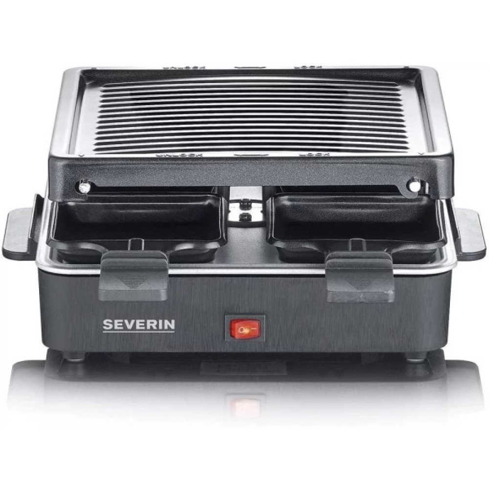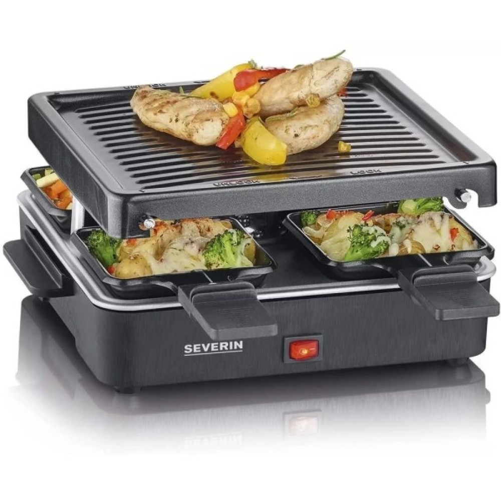 Електричний раклет-гриль Severin RG 2370 дуже простий у використанні. Він поставляється із 4 міні-сковорідками, тому ви можете готувати одночасно до 4 порцій. Ручка покрита термостійким пластиком для запобігання опікам.