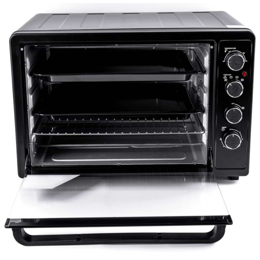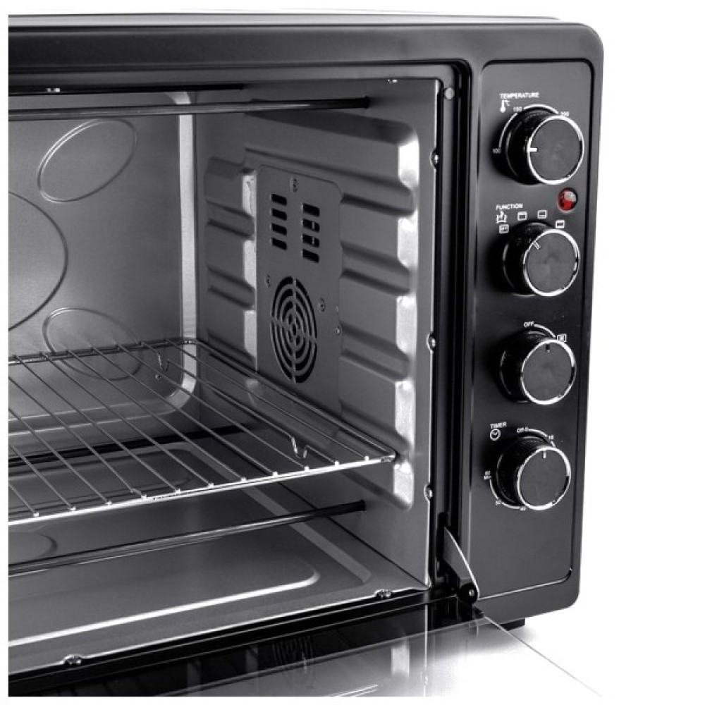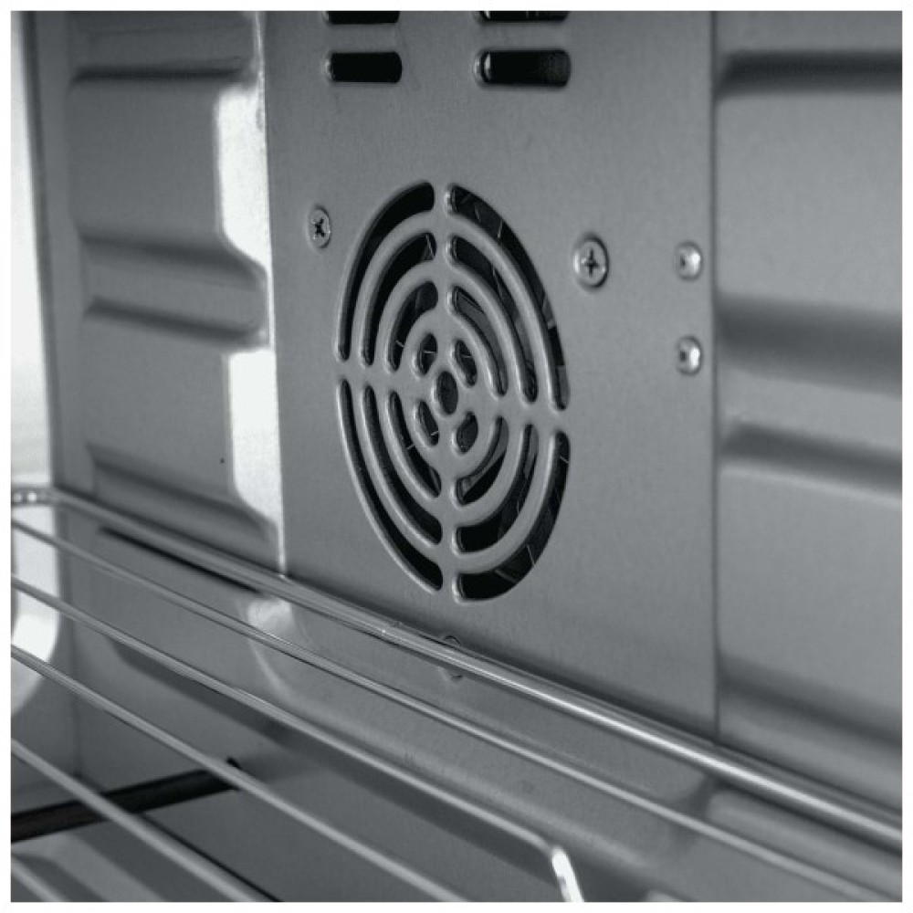 Зручні поворотні ручки управління прості в користуванні, вибір встановлених програм, температури і часу логічний і інтуїтивно зрозумілий. Об'єм печі дозволяє готувати кілька страв на різних рівнях одночасно, а реалізувати цю можливість допоможуть 2 дека і решітка, що входять в стандартну комплектацію. Інструкцій щодо видалення гарячого дека з духовки передбачена спеціальна знімна ручка-тримач. Золотисту скориночку на м'ясних, рибних, овочевих стравах або випічці подарує вбудований режим конвекції, який рідко пропонується в комплектації міні-печей.