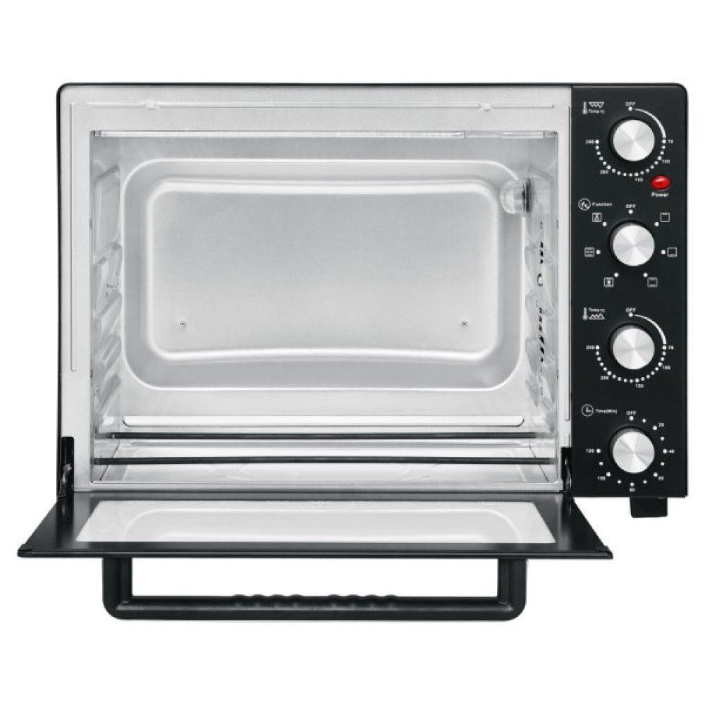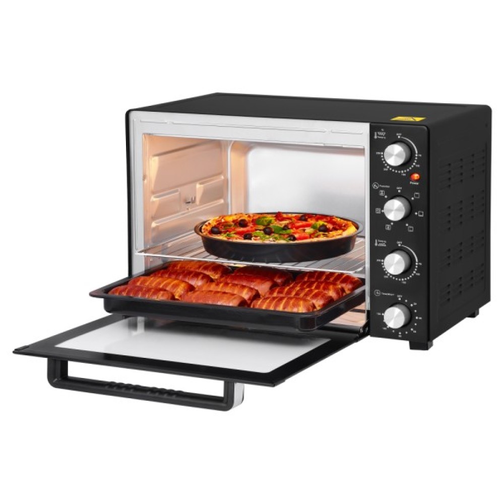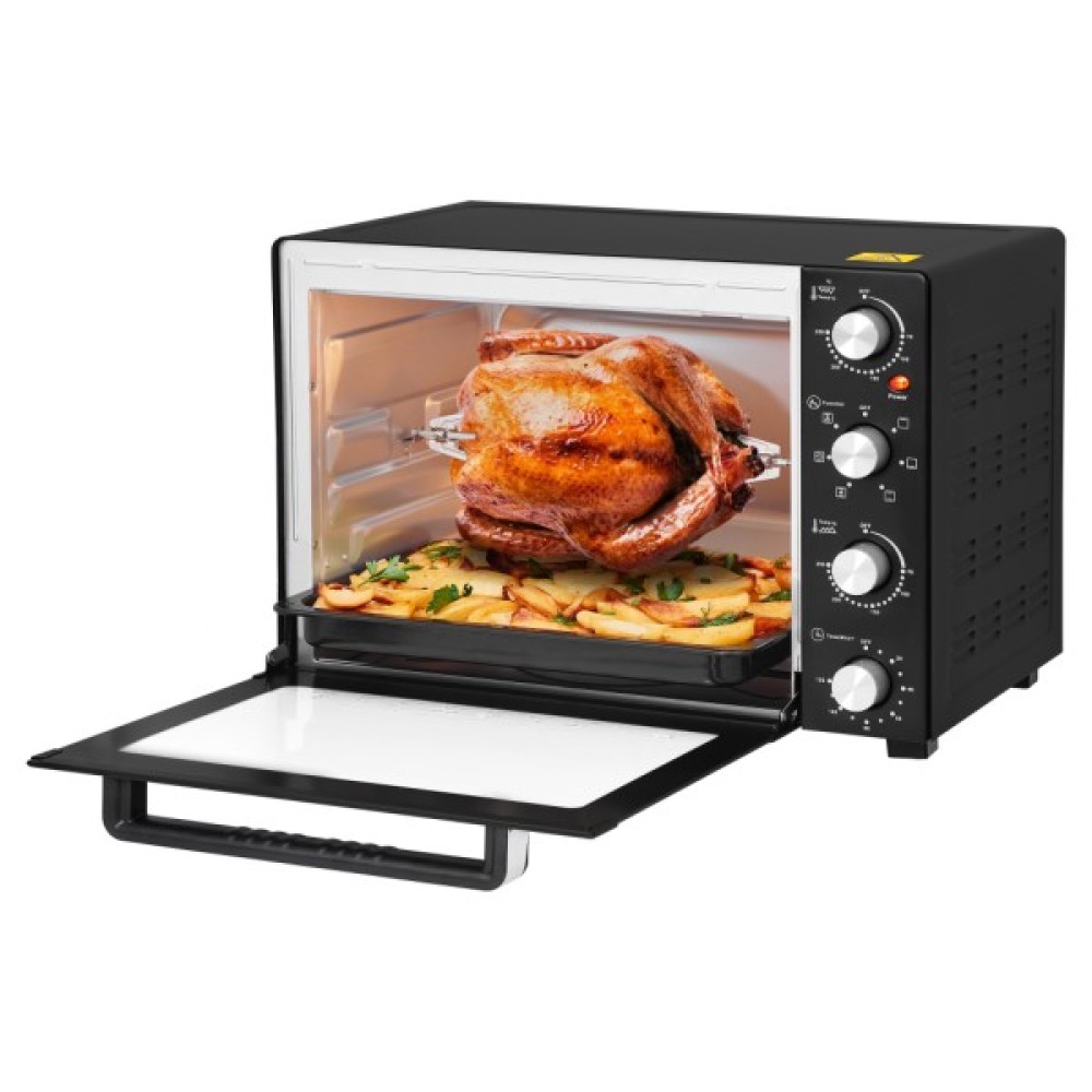 Внутрішній об'єм настільної духової шафи Rotex ROT650-B 60 л дозволять пекти торти та іншу випічку будь-якої складності. Також ці параметри достатні для запікання птиці, навіть у рамках підготовки до великих сімейних свят. Різні режими роботи дозволяють вибирати між верхнім і нижнім нагріванням або використовувати їх комбінацію. Режим конвекції, що включається за бажанням, гарантує апетитну золотисту скоринку на будь-яких видах страв. Регулювання температури від мінімальних 70 до максимальних 250 градусів дає можливість з однаковою легкістю швидко запікати м'ясо або сушити вимогливі пастилу і безе. Таймер дозволить задати необхідний час приготування та подасть сигнал, коли процес буде завершено.