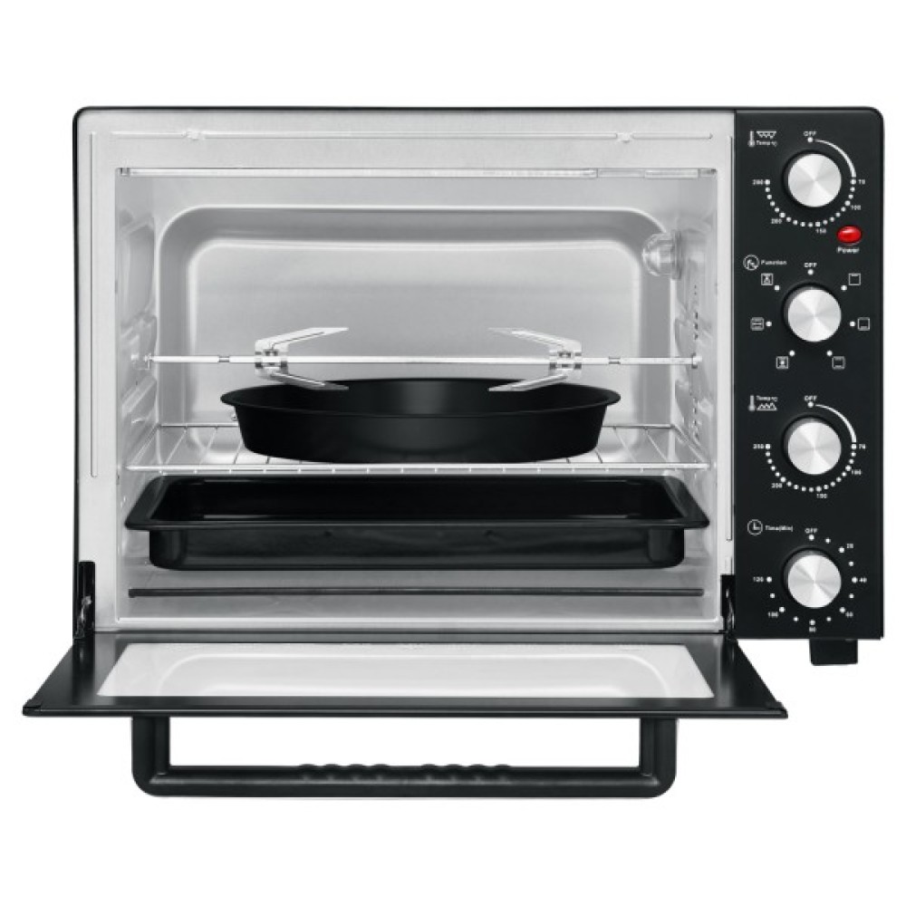 Купуючи духовку Rotex ROT650-B, немає необхідності в додатковому інвентарі для приготування. Круглий і прямокутний лист дають можливість готувати все, від тортів до цілих великих шматків м'яса. Вертел для гриля забезпечить рівномірне запікання з кожного боку, у поєднанні з режимом конвекції можна розраховувати на блюдо, не гірше за ресторанне. А якщо фантазія вичерпалася, книга з рецептами, яка також входить до комплекту, дозволить урізноманітнити сімейне меню.