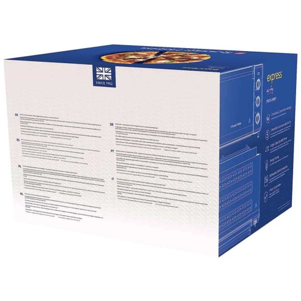Зовнішній піддон для крихт, розташований у нижній частині духовки, зручно збере всі крихти в одному місці та полегшить догляд за піччю. Готуйте для всієї родини з міні-піччю Russell Hobbs Air Fry Mini Oven.