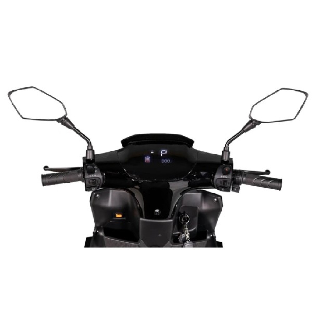 Надійний та зручний представник персонального транспорту. Електричний скутер дозволяє переміщатися на відстань до 80 кілометрів завдяки використанню потужного 2000Вт двигуна, вбудованого в заднє колесо та акумуляторної батареї великої ємності.