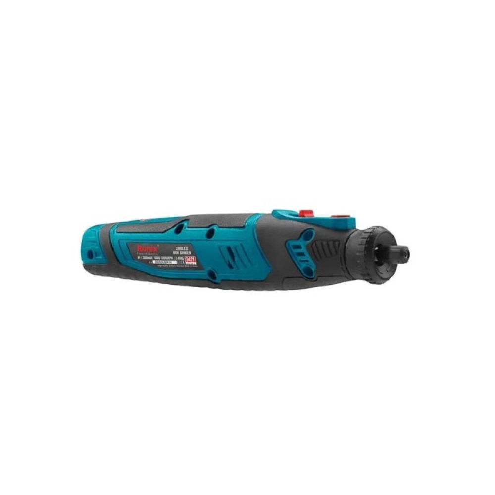 Акумуляторний гравер Ronix 3421 оснащений двигуном постійного струму на 8 В, який розвиває швидкість до 30000 об/хв і передає її на 3.2-міліметровий тримач. Швидкість можна налаштувати в 5 різних режимах, від 5000 до 30000 об/хв, в залежності від ваших робочих потреб. Залежно від свого основного призначення та типу роботи, гравер має невеликий розмір і дуже легку вагу, завдяки чому він легко поміщається в руці і може працювати протягом тривалого часу без будь-якої втоми для користувача.