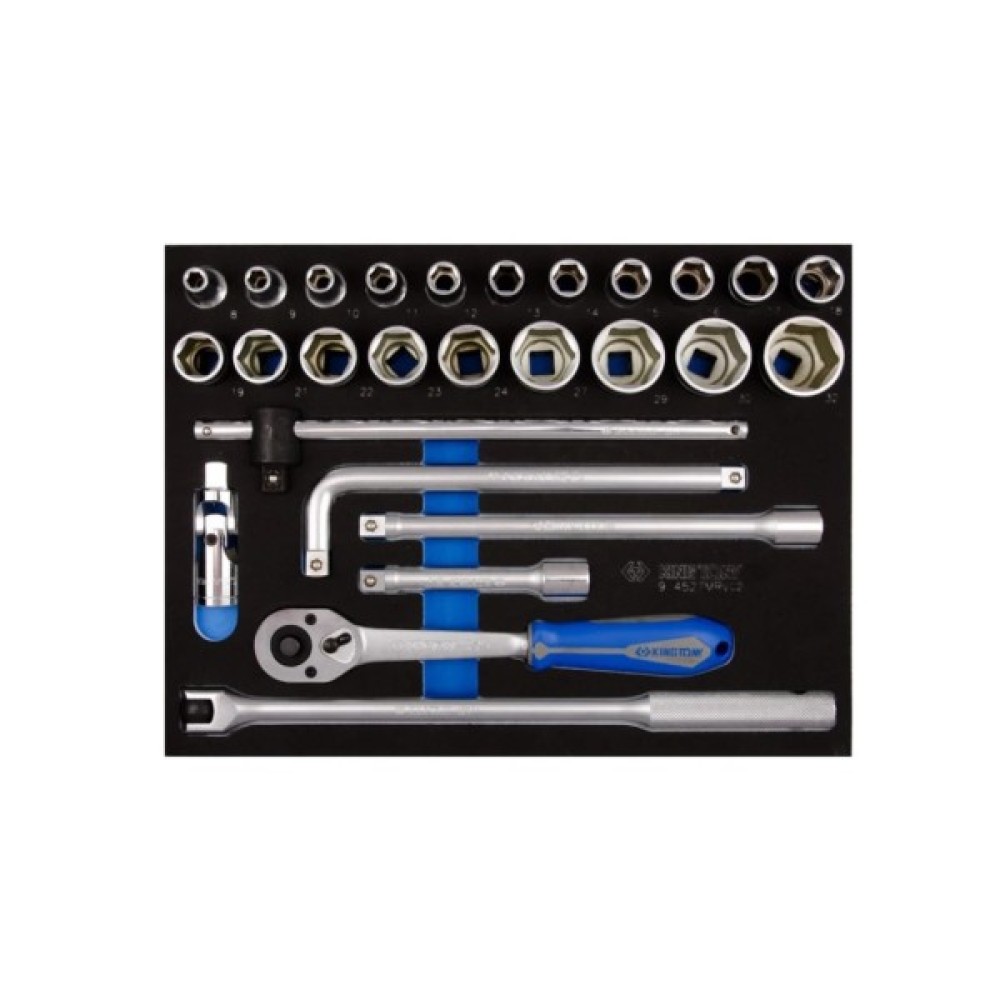 Набір інструментів KING TONY торцевих головок 1/2" з принаддям в ложементі, 27 шт. (9-4527MRV02)