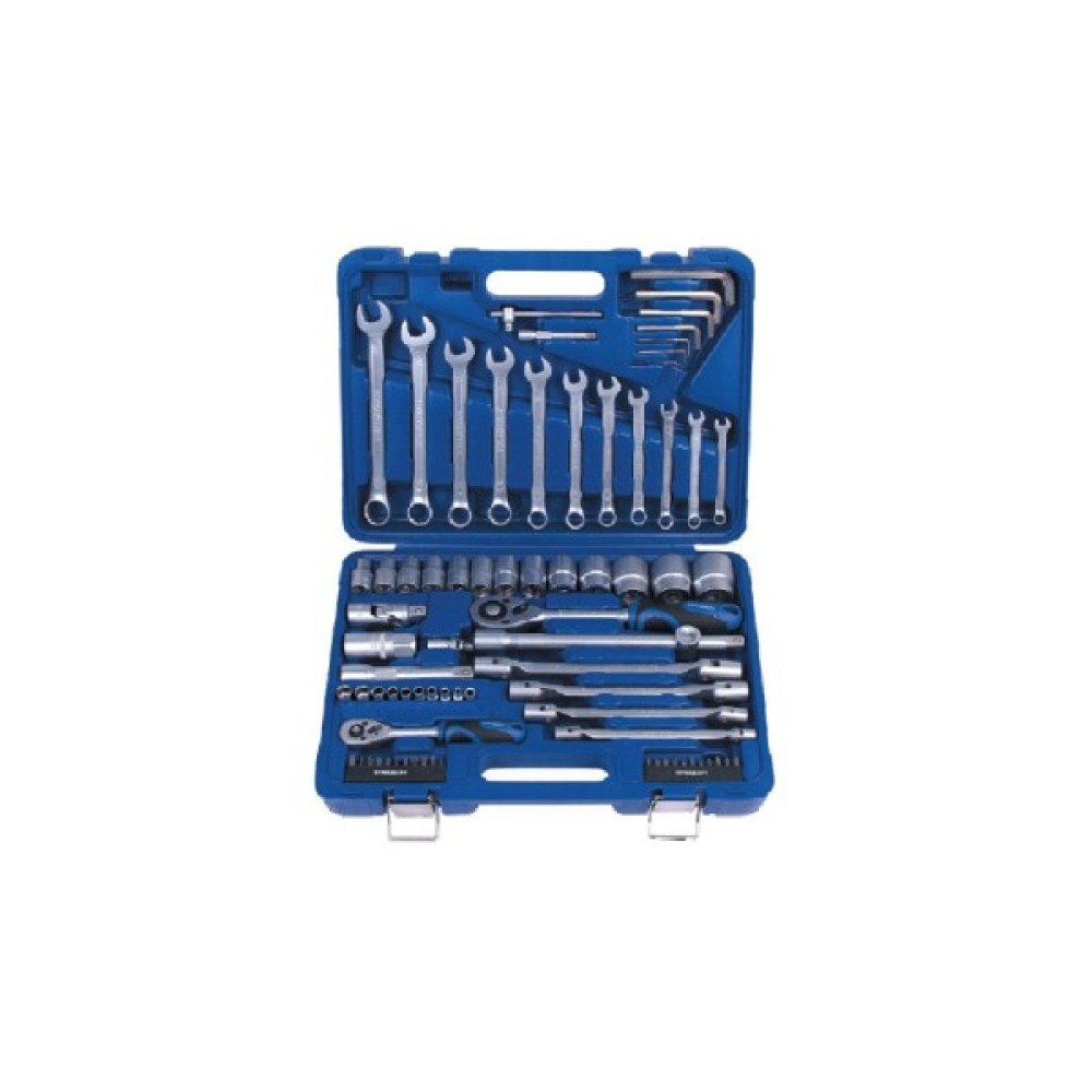 Цей автомобільний набір включає 77 ретельно відібраних інструментів, серед яких тріскачка, кардан шарнірний, гайкові ключі та торцеві ключі, що є невід'ємними для проведення складань та ремонту автомобілів. В комплекті 15 гайкових ключів, які представлені в двох типах: торцевий та комбінований. Розміри цих ключів варіюються від 8 x 9 до 14 x 15, що дозволяє працювати з широким спектром кріплень.