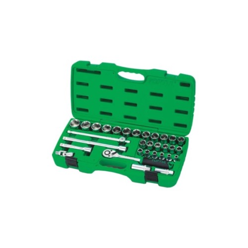 Завдяки високоякісним матеріалам, з яких виготовлені інструменти, ви можете бути впевнені у їхній довговічності та стійкості до зношування. Кожна деталь набору ретельно продумана для найкращої продуктивності. До його складу входять 31 одиниця різноманітних інструментів, серед яких: тріскачка, кардан шарнірний, подовжувач та торцеві головки.