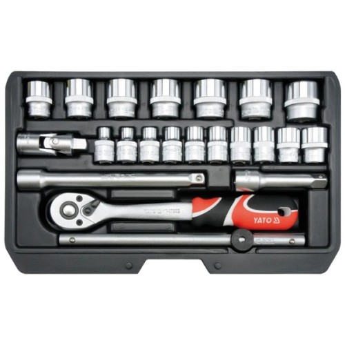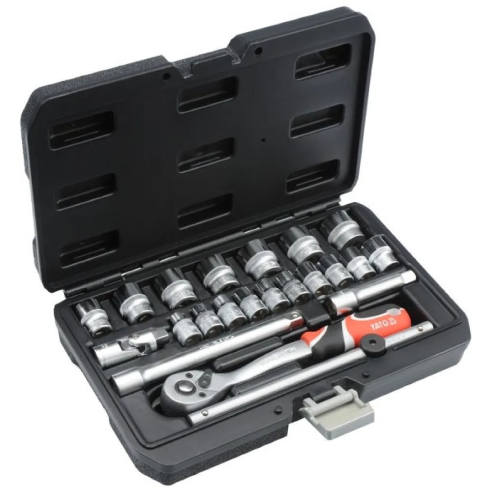 Кожен елемент набору виготовлено з високоміцної хромо-ванадієвої сталі, що забезпечує тривалий термін експлуатації і стійкість до зношування. Додатковим бонусом є спеціалізований кейс, який надійно захищає інструменти від пошкоджень і забезпечує легкість у зберіганні та транспортуванні. Це робить Yato YT-38561 ідеальним вибором для тих, хто цінує зручність і функціональність в одному комплекті.