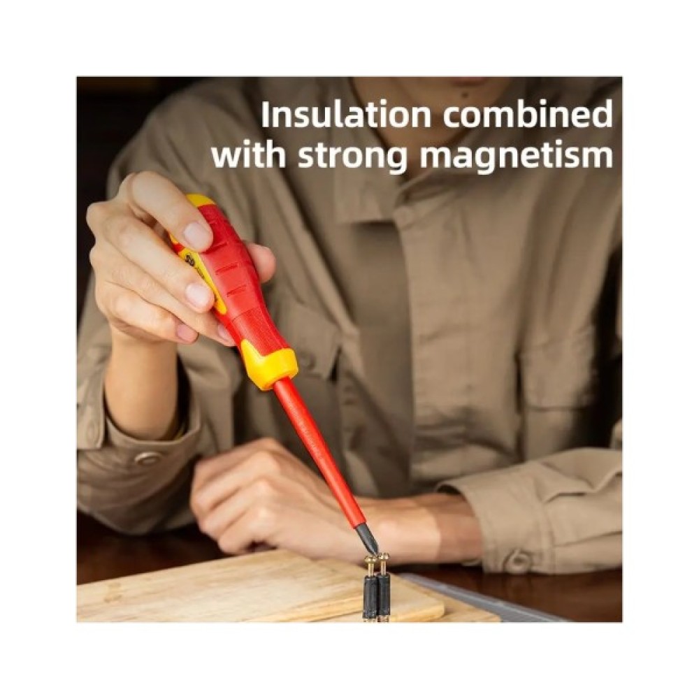 Потрібна безпечна та надійна викрутка для електромонтажу? Ця ізольована модель PH2 × 100 мм витримує до 1000 В і має стійкий до корозії стрижень із Cr-V сталі. Зручна двоколірна ручка добре лежить у руці, а тримач для підвішування — це плюс до зберігання. Надійна, компактна і готова до щоденних задач.