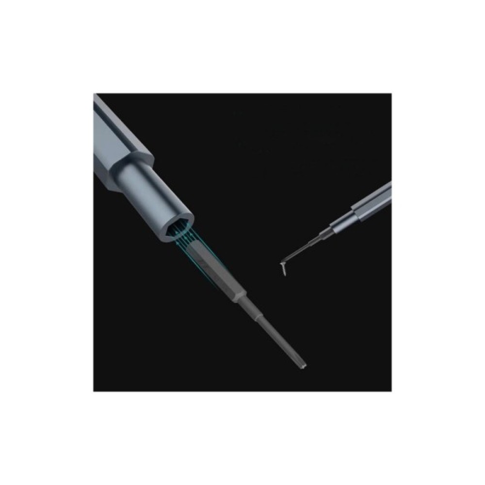Крім біт, в комплект входять ручка викрутки, пінцет з нержавіючої сталі, ящик для зберігання гвинтів та алюмінієва трубка для зберігання насадок. Також передбачено сумку для перенесення, яка спрощує транспортування та зберігання інструменту.