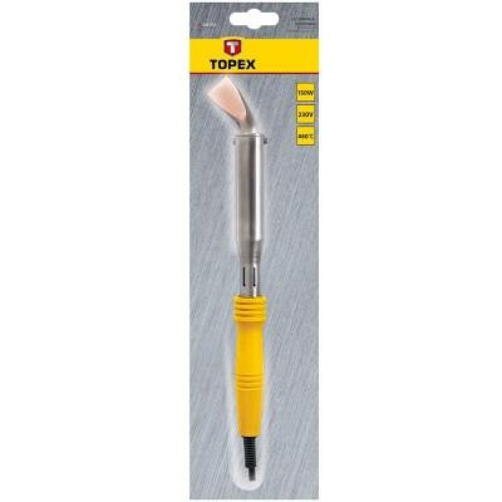 Паяльник електричний TOPEX 150 Вт (44E030) з робочою температурою 410°C. Призначений для з'єднання металевих деталей за допомогою низькотемпературного припою, наприклад, олов'яно-свинцевого для м'якої пайки. Знаходить застосування при виконанні механічних, жестяницьких і покрівельних робіт. Паяльник електричний TOPEX 150 Вт (44E030) в основному використовується для пайки листового металу, а також в якості маркувального інструменту, або для різання вінілових матеріалів.