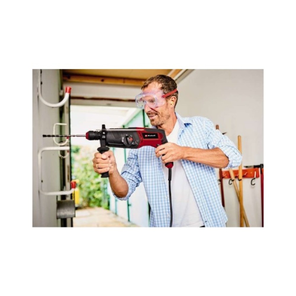 Перфоратор Einhell TE-RH 950 5F поставляється в кейсі. Практичний кейс підходить не тільки для безпечного транспортування пристрою, але і для зберігання в чистому вигляді. У комплект поставки також входить додатковий патрон для свердління, який особливо зручний для загвинчування і свердління. Це робить перфоратор корисним універсальним інструментом для дому та майстерні.