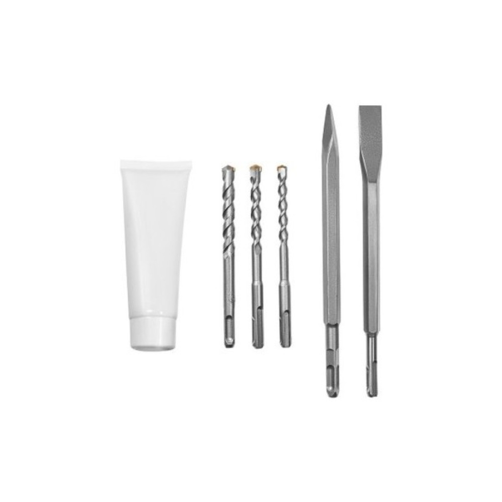 Комплектація перфоратор; додаткова рукоятка; обмежувач глибини; пластиковий кейс; документація; 3 бури